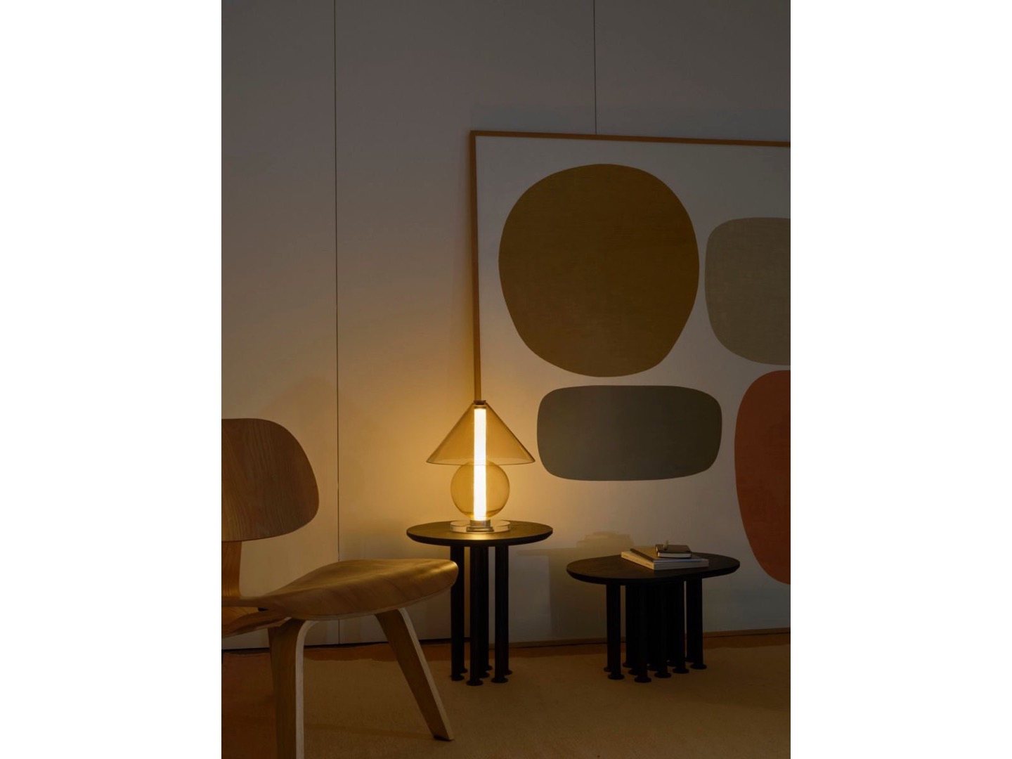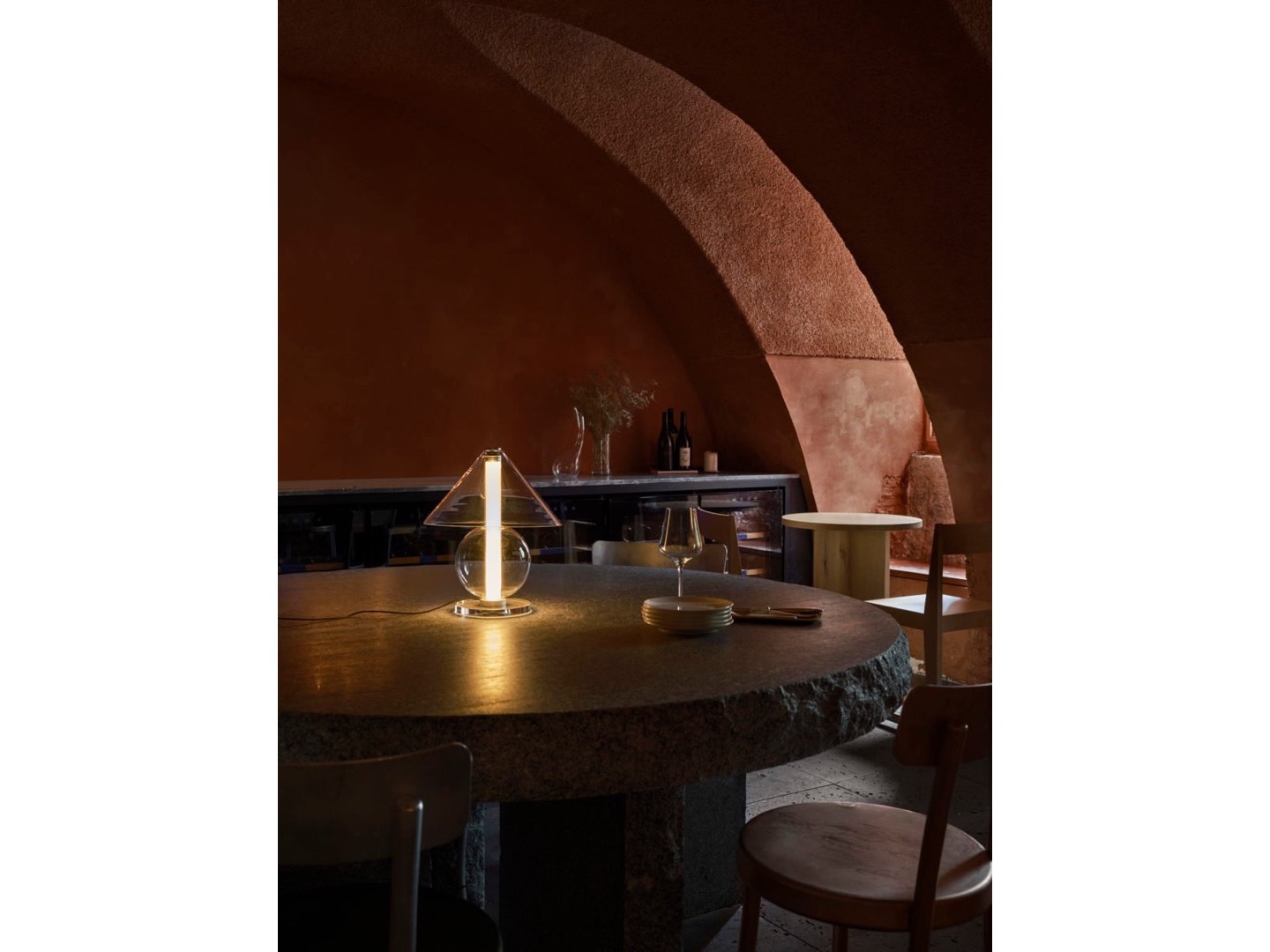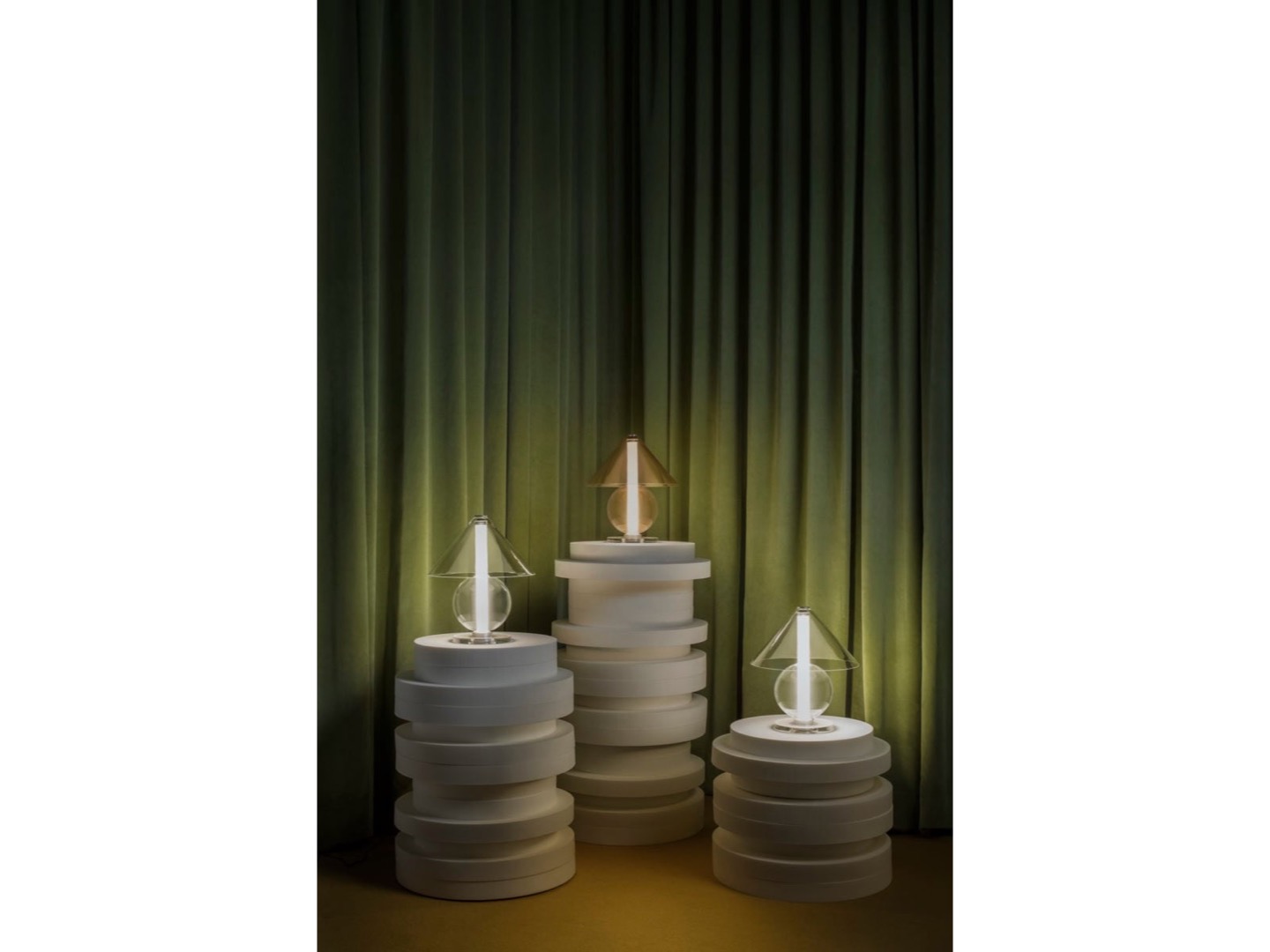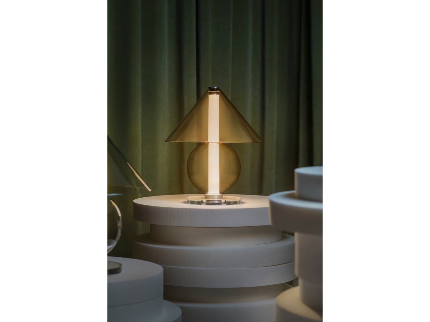 W jej formie odnajdujemy pozostałości przeszłości; w materiale odnajdujemy emocje. Szkło nie tylko odsłania źródło światła; mówi także o czystości, lekkości i tym, jak ten projekt wtapia się w otoczenie. Cylinder cieniuje ciepłe, rozproszone i stopniowane światło.