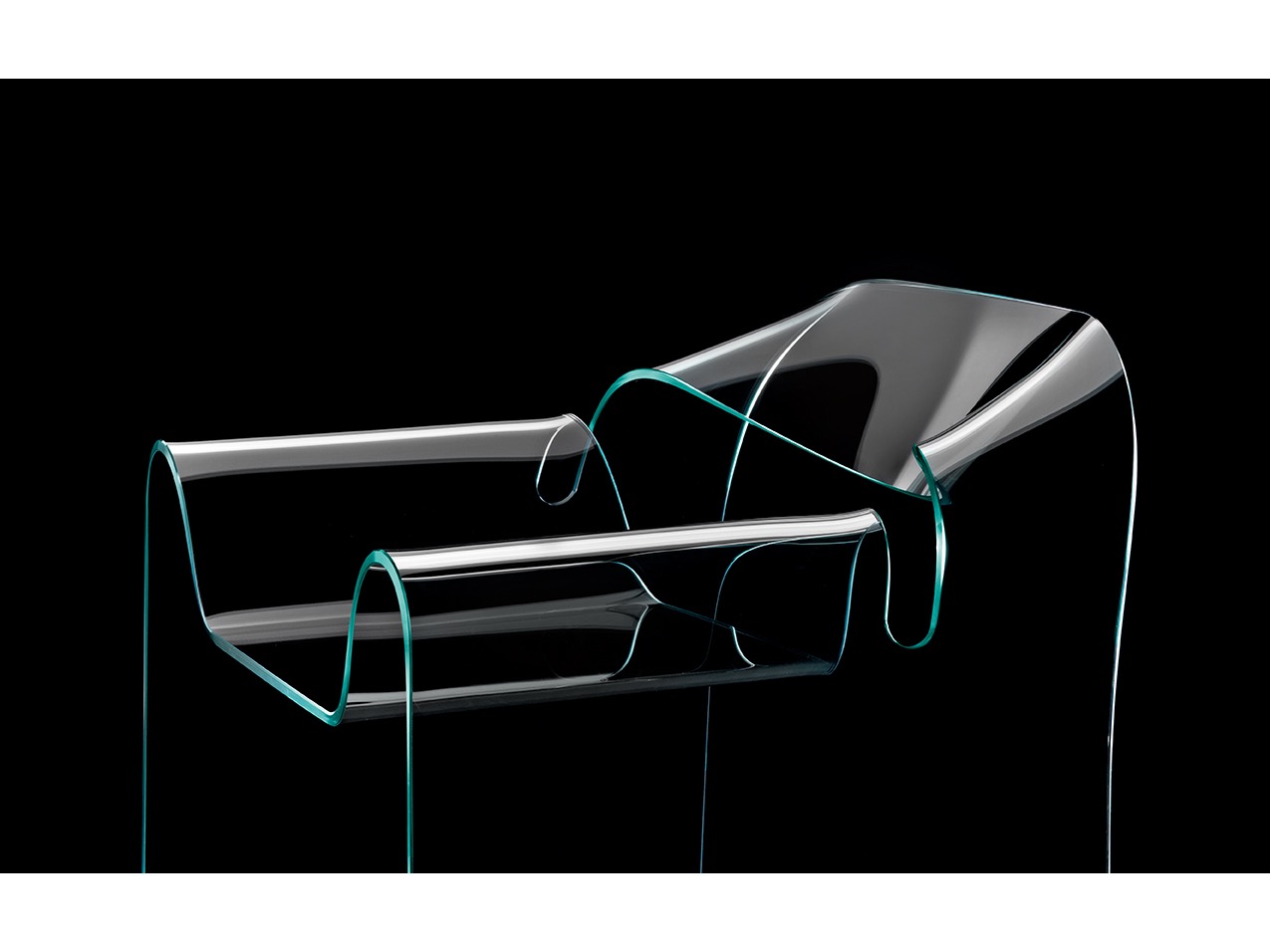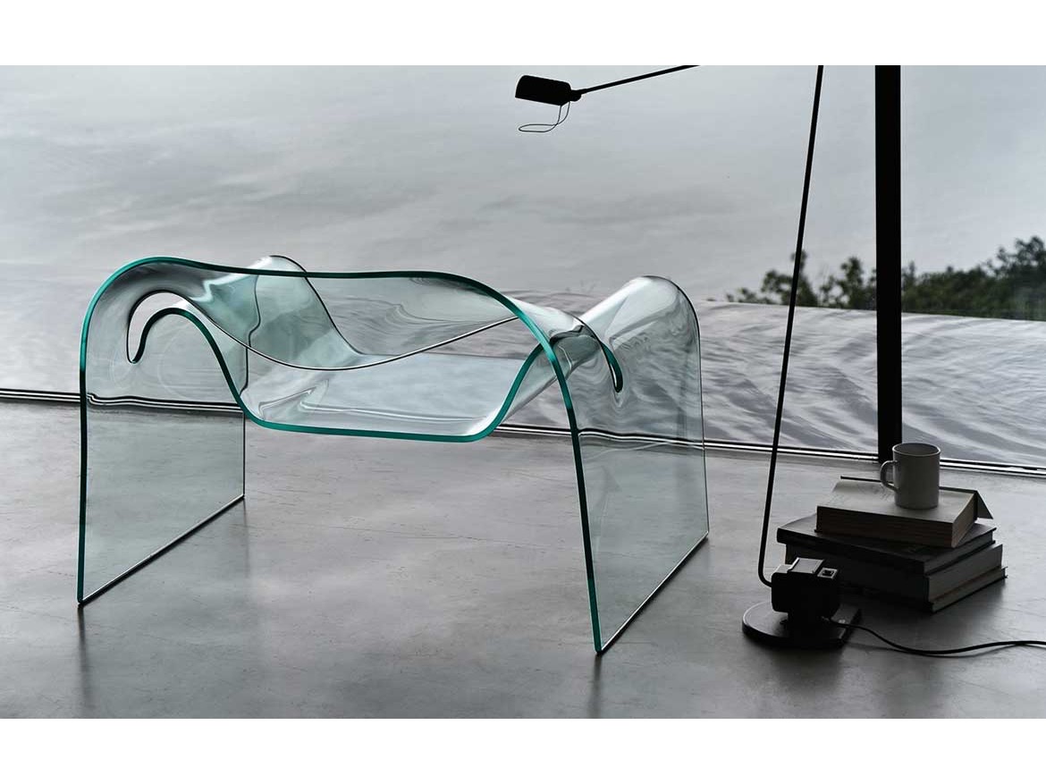 Fotel Ghost to monolityczne dzieło uformowane z jednego kawałka giętego szkła o grubości 12 mm Wym. 95 x 75 x 68 Oglądaj galerię zdjęć i skontaktuj się z nami po więcej szczegółów oferty!