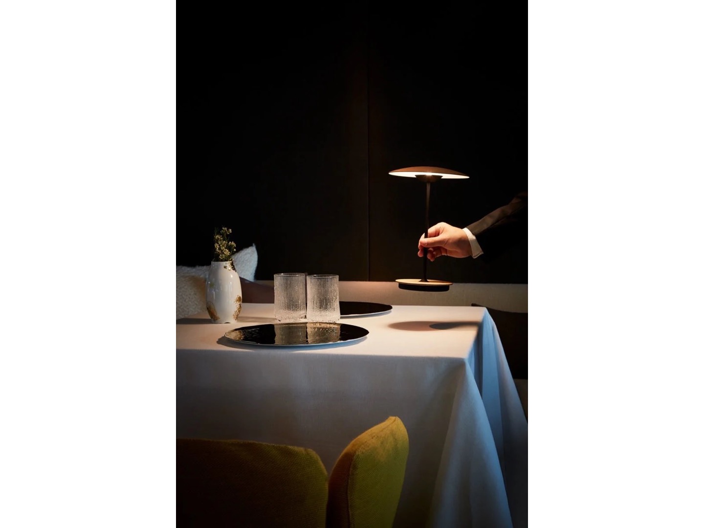 Dzięki akumulatorowi litowo-jonowemu nowa przenośna wersja lampy stołowej Ginger umożliwia niezależne oświetlenie przestrzeni z całkowitą swobodą i bez konieczności stosowania przewodów.