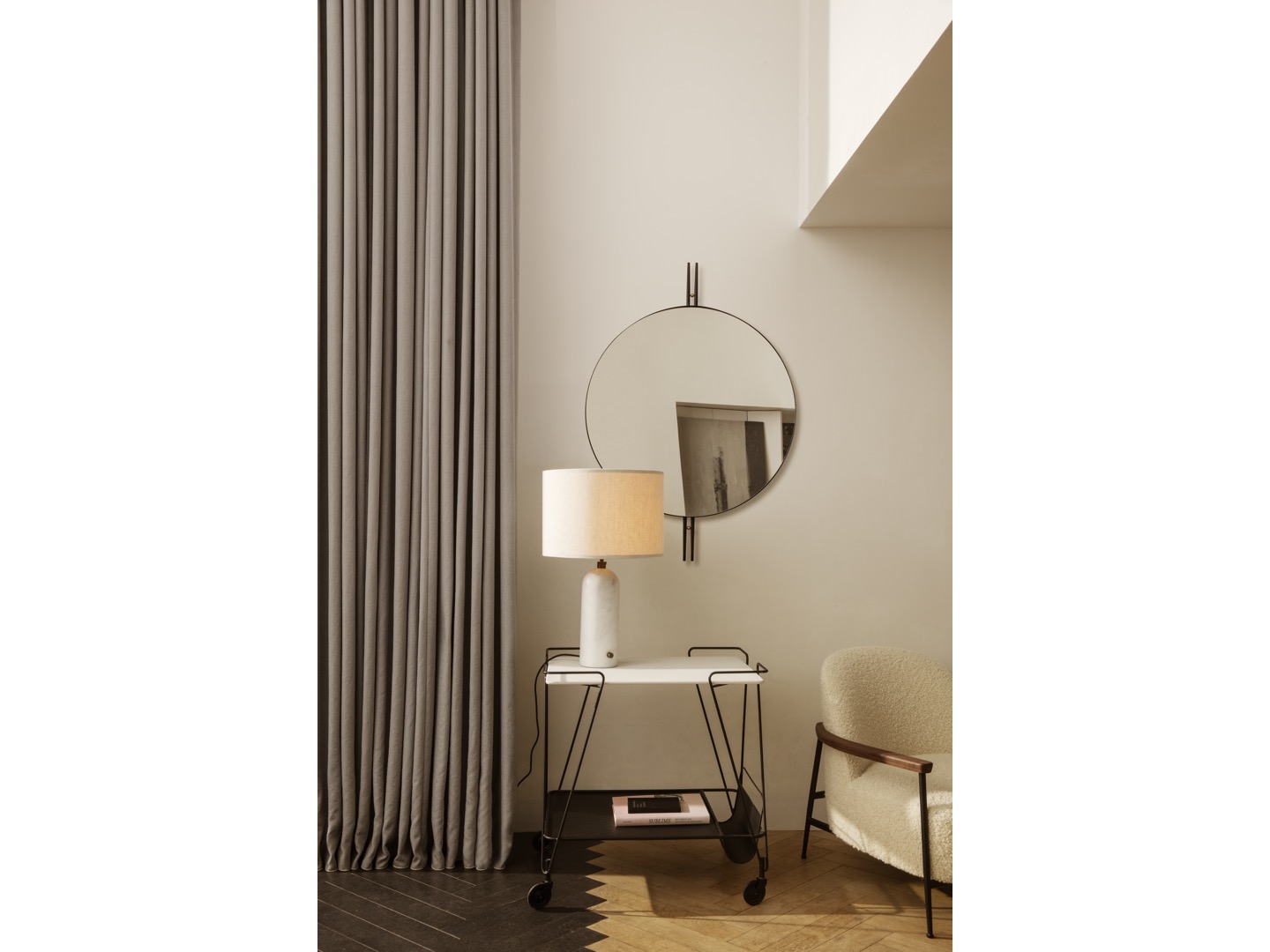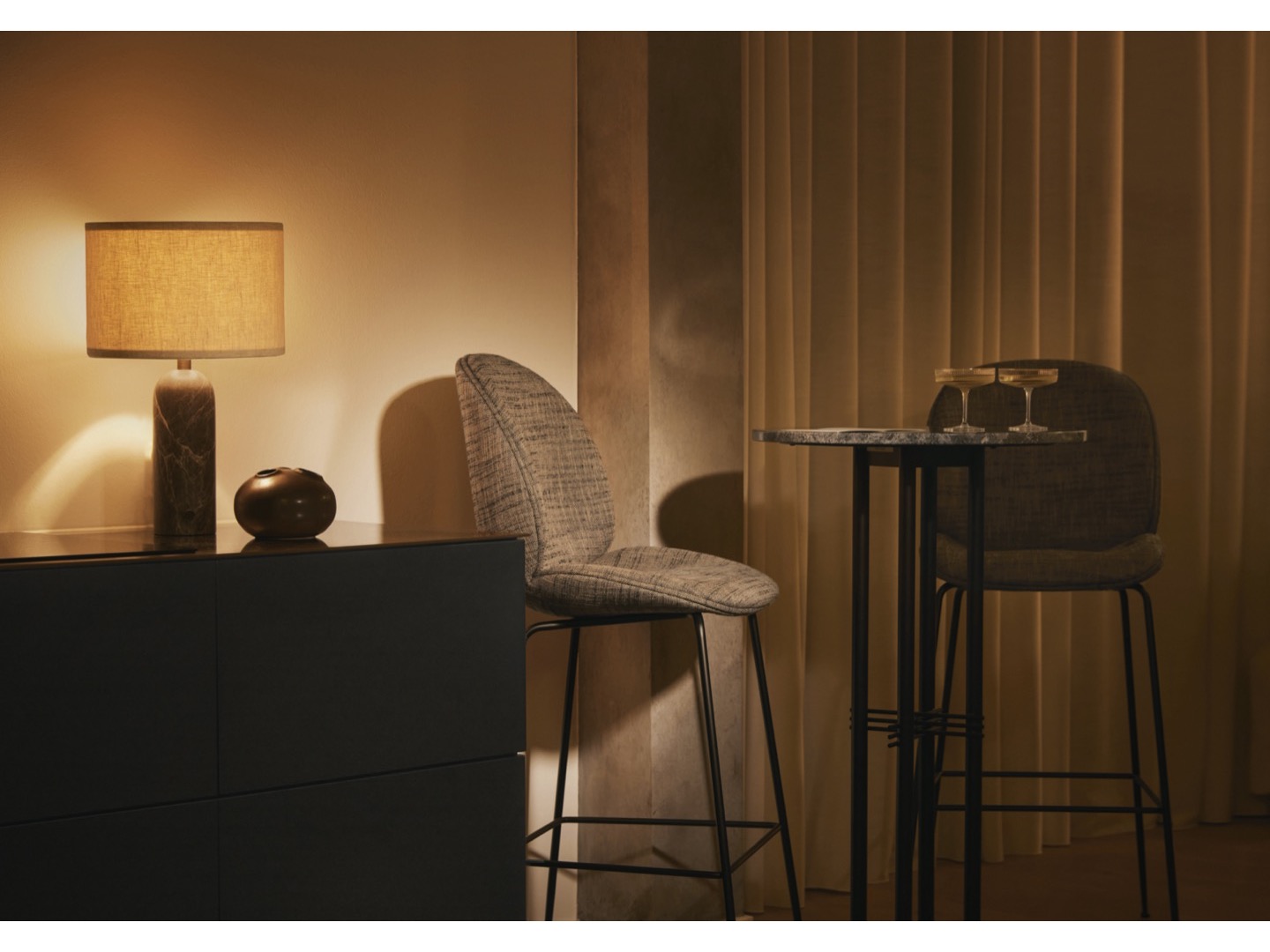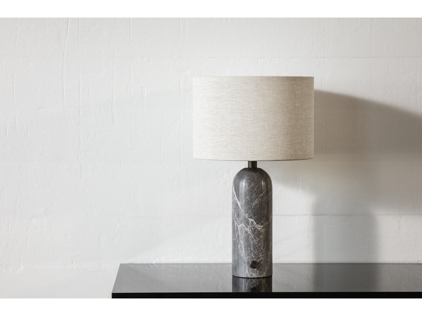 Lampa stołowa Gravity, zaprojektowana przez Space Copenhagen, estetycznie kontrastuje z siłą i delikatnością. Biorąc swoją nazwę od charakterystycznej równowagi lampy pomiędzy mocowaniem ciężkiej, cylindrycznej podstawy i lekkim, przewiewnym kloszem, pięknie łączy się w rzeźbiarską całość.
