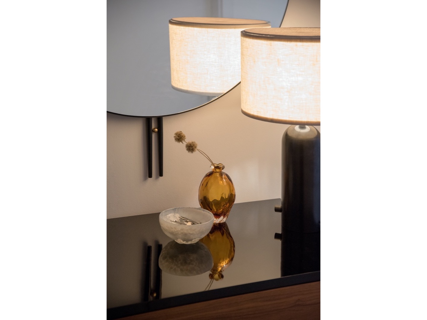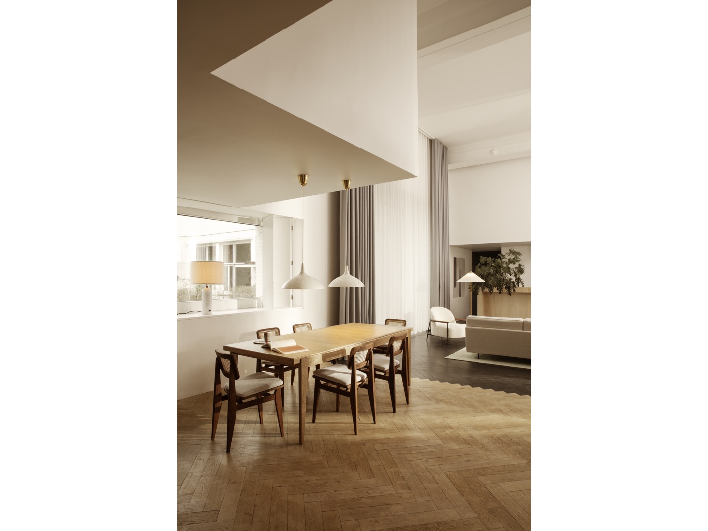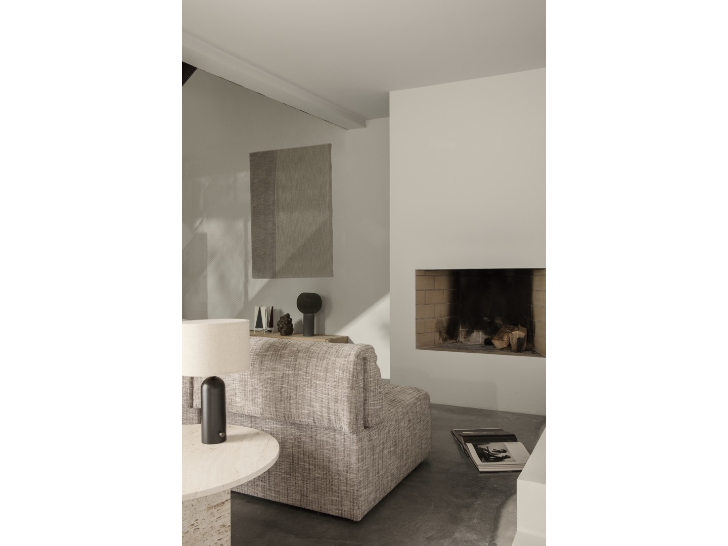 Lampa stołowa Gravity, zaprojektowana przez Space Copenhagen, estetycznie kontrastuje z siłą i delikatnością. Biorąc swoją nazwę od charakterystycznej równowagi lampy pomiędzy mocowaniem ciężkiej, cylindrycznej podstawy i lekkim, przewiewnym kloszem, pięknie łączy się w rzeźbiarską całość.