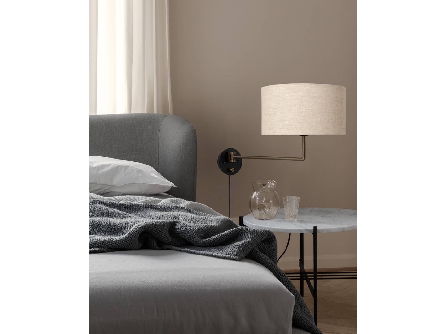 Lampa ścienna Gravity, zaprojektowana przez Space Copenhagen, estetycznie kontrastuje z siłą i delikatnością. Biorąc swoją nazwę od charakterystycznej równowagi lampy pomiędzy mocowaniem ciężkiej, cylindrycznej podstawy i lekkim, przewiewnym kloszem, pięknie łączy się w rzeźbiarską całość.