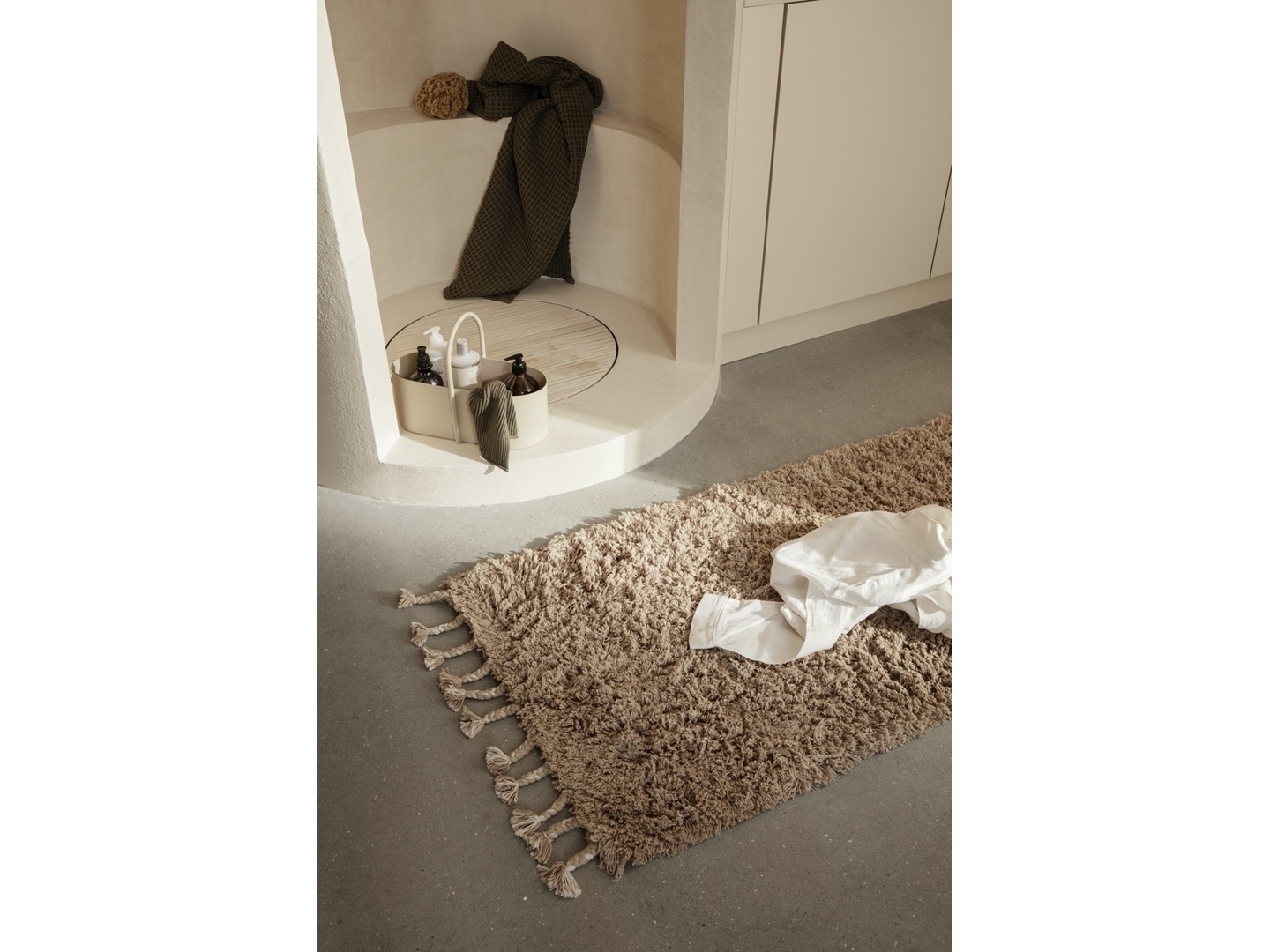 Wykonana z malowanego proszkowo metalu, ma owalny kształt i rączkę, która wygodnie leży w dłoni podczas noszenia.