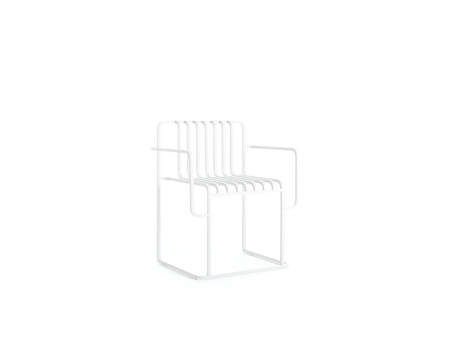 Projektanci zainspirowali się kwadratową rura aluminiową, która tworzy podstawową strukturę kolekcji. Ma bardzo szczególny kształt, który przywodzi na myśl grille. Stąd rezultatem jest geometryczny, czysty i prosty projekt. Krzesła dostępne są w palecie 7 odważnych kolorów: White, Rose, Red, Light Grey, Anthracite, Sand, Bronze.