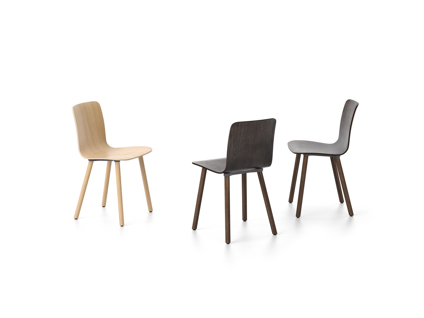 W ofercie krzesła na drewnianych lub metalowych nogach, z podłokietnikami lub bez, na płozach, w wersji stołowej lub barowej średniej i wysokiej.