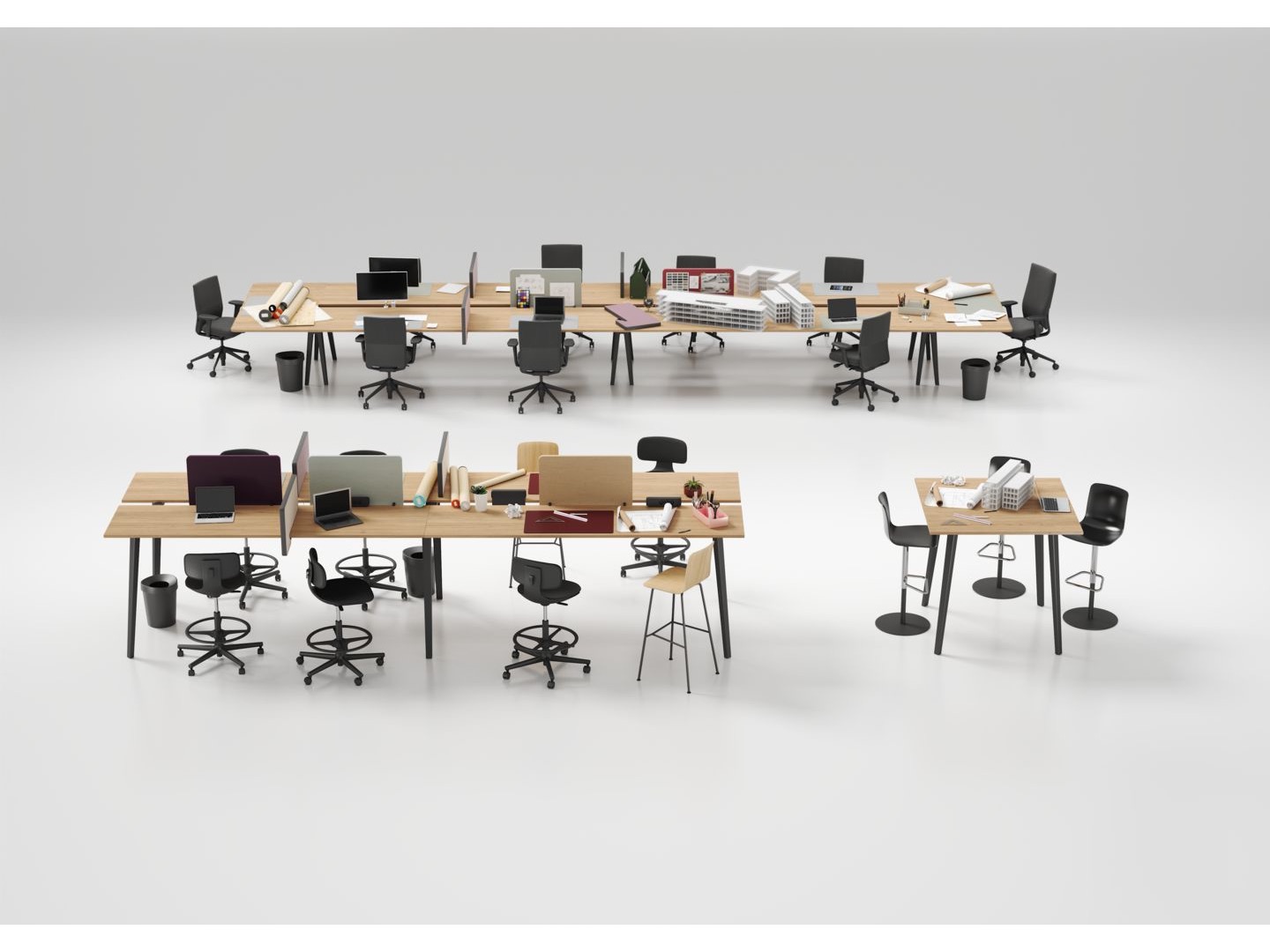 W ofercie krzesła na drewnianych lub metalowych nogach, z podłokietnikami lub bez, na płozach do sztaplowania lub nie, w wersji stołowej lub barowej średniej i wysokiej.