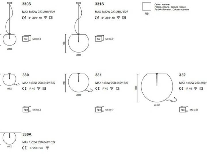 330S- śr. 50 cm, wys. 44 cm; MAX 1x32W 220-240V E27