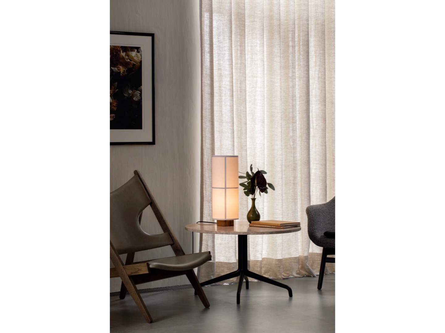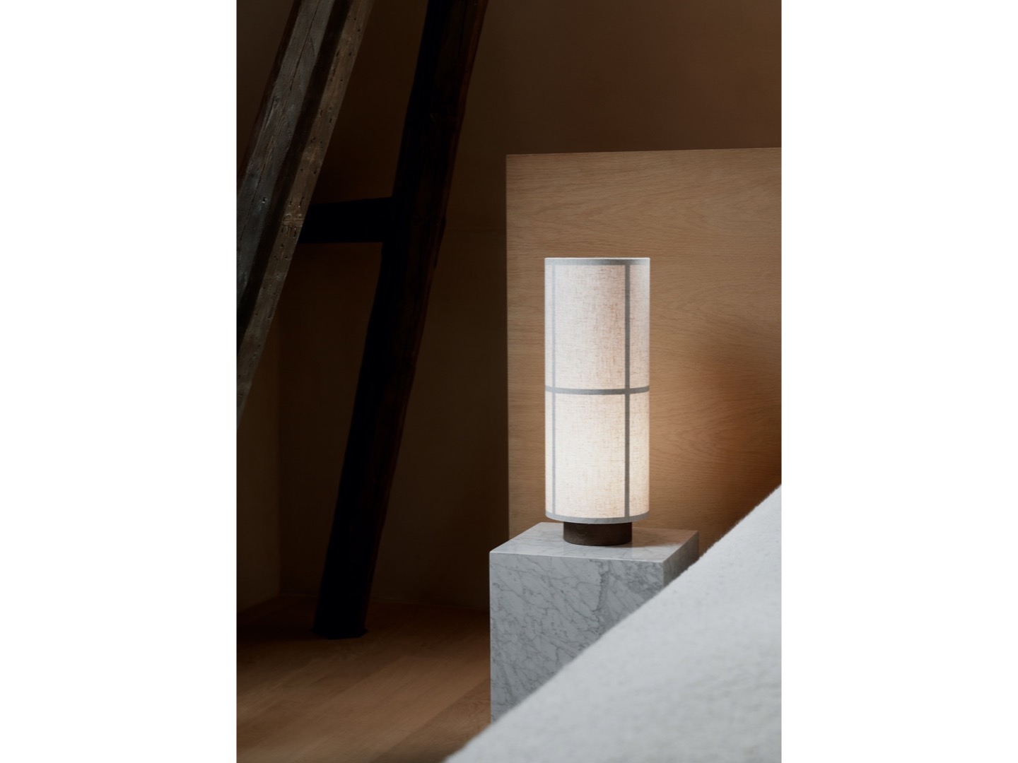 Hashira to lampa stołowa ukształtowana na podstawie cylindrycznej formy geometrycznej. Lampa stołowa nawiązuje do półprzezroczystej tkaniny japońskich lampionów, które delikatnie rozpraszają światło w wielu kierunkach. Jest osadzona na jesionowej podstawie, która podkreśla minimalistyczny wyraz.