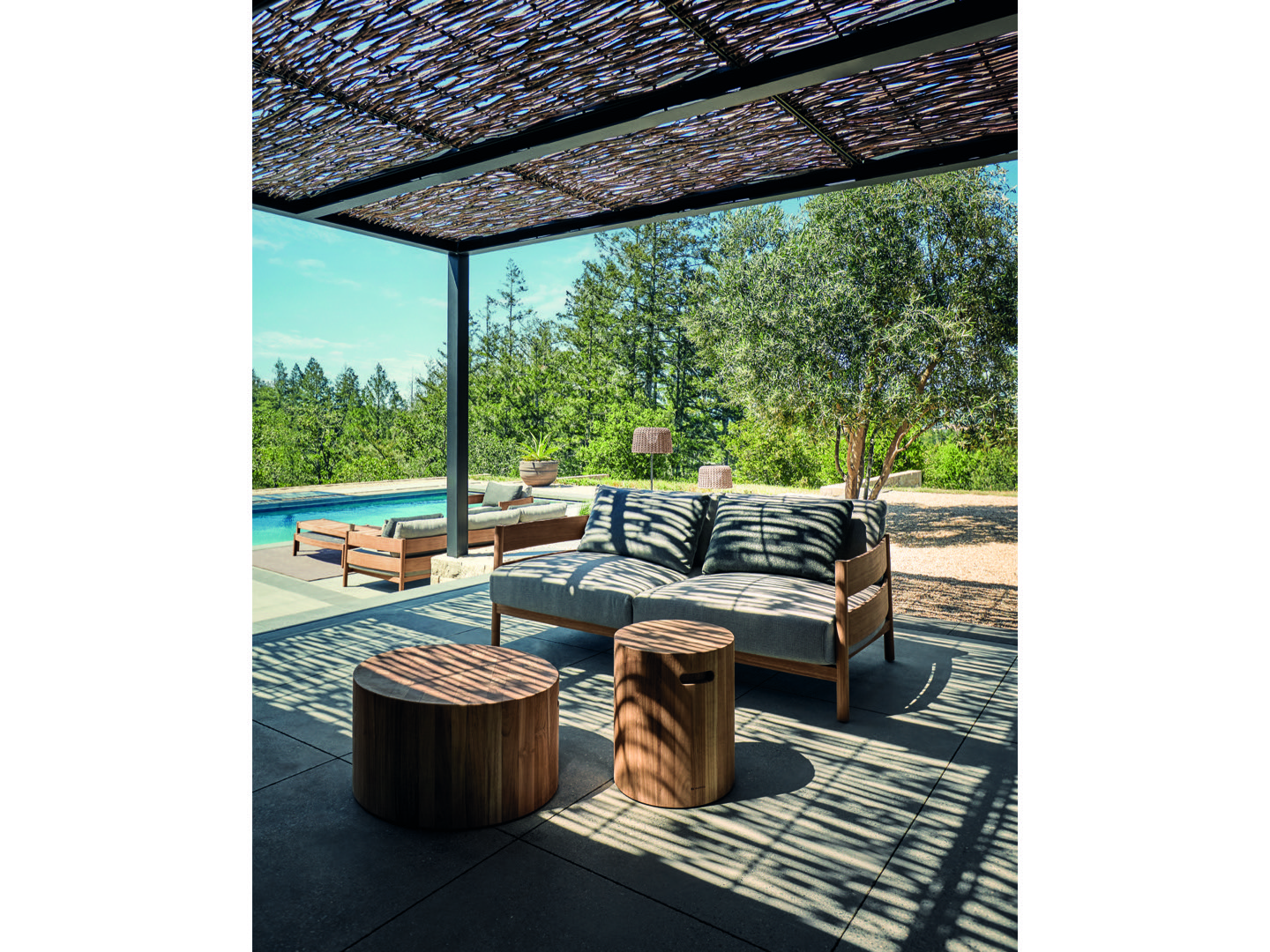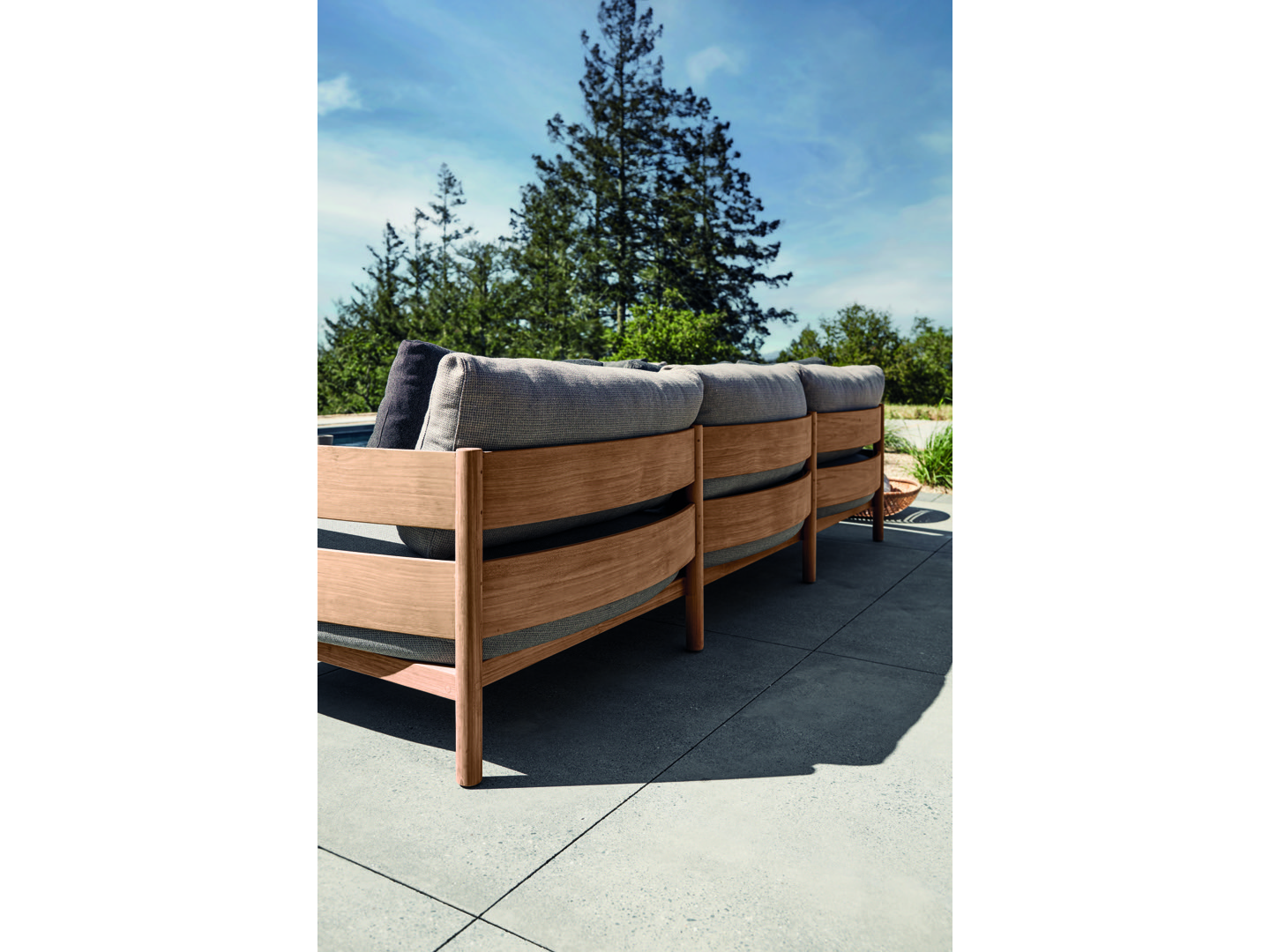 Haven łączy solidne ramy tekowe z głębokimi i luksusowymi poduszkami. Subtelnie zaokrąglone panele tylne i boczne zostały zaprojektowane, aby tworzyć środowisko idealne do relaksu.