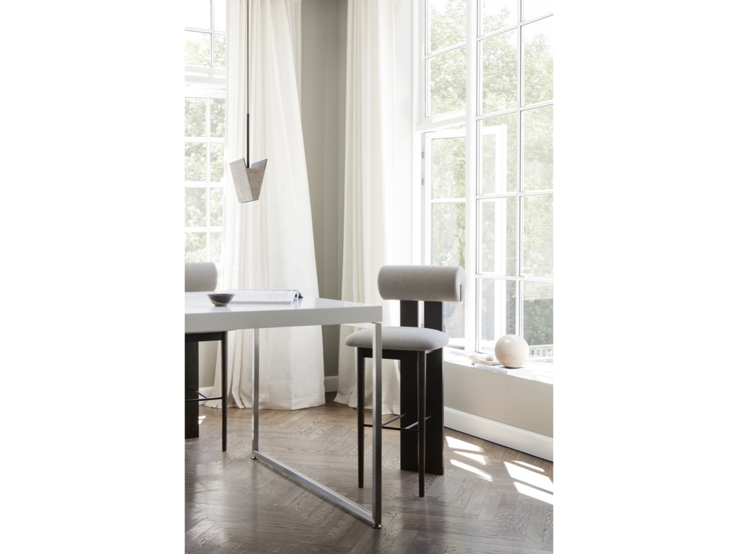 Miękkie kształty są charakterystyczne dla serii Hippo, która stanowi stylowe zestawienie w każdym wnętrzu. Krzesło Hippo stoi na dwóch solidnych nogach i drewnianym profilu łączącym siedzisko i oparcie, który w wyraźnym kontraście do miękkich kształtów jest twardy i mocny. Charakterystyczny drewniany profil nóg występuje w czterech różnych dębowych wykończeniach; naturalne, jasno wędzone, ciemno wędzone i czarne, a siedzisko i oparcie dostępne są w różnych wariantach tapicerki.