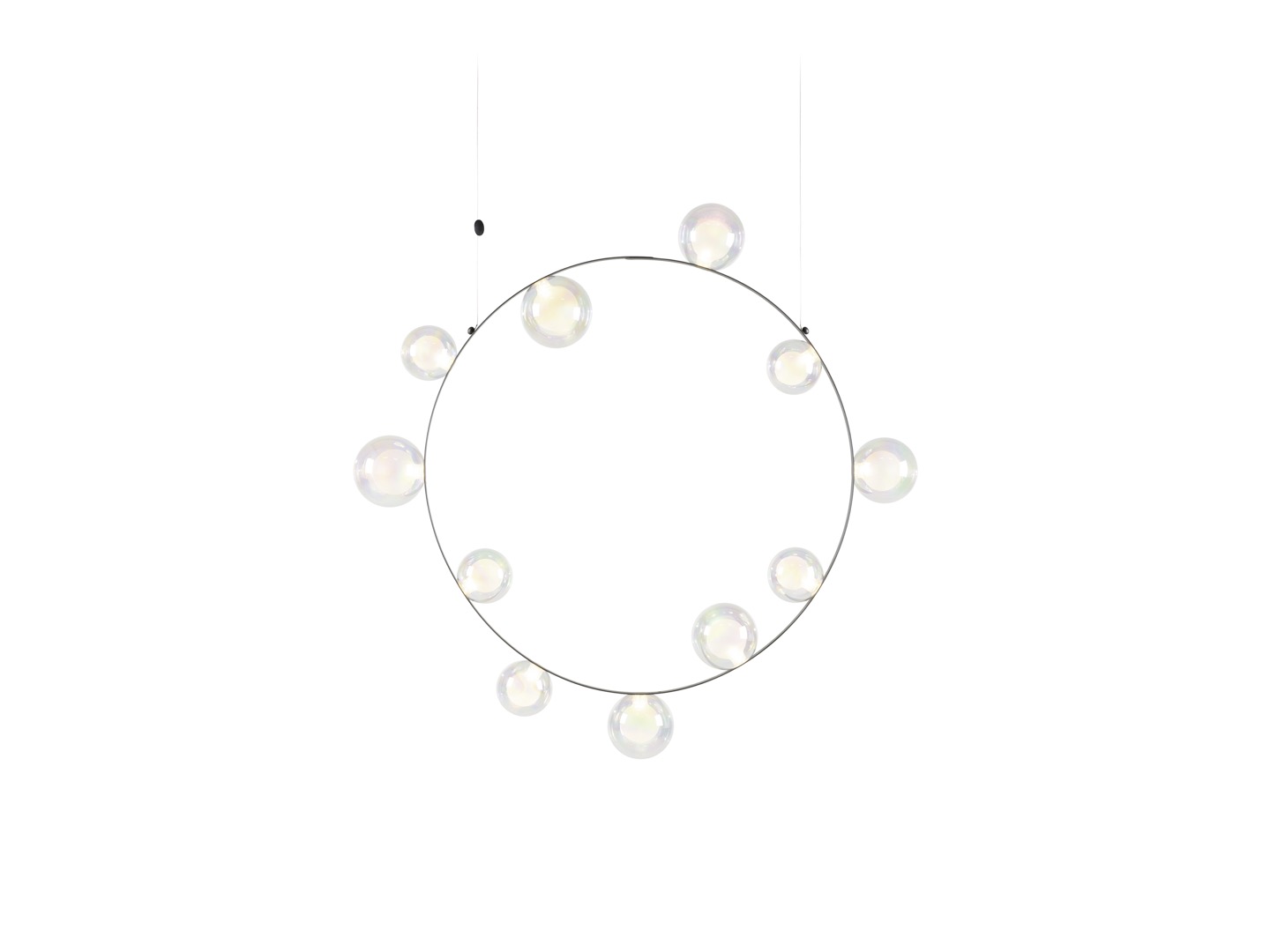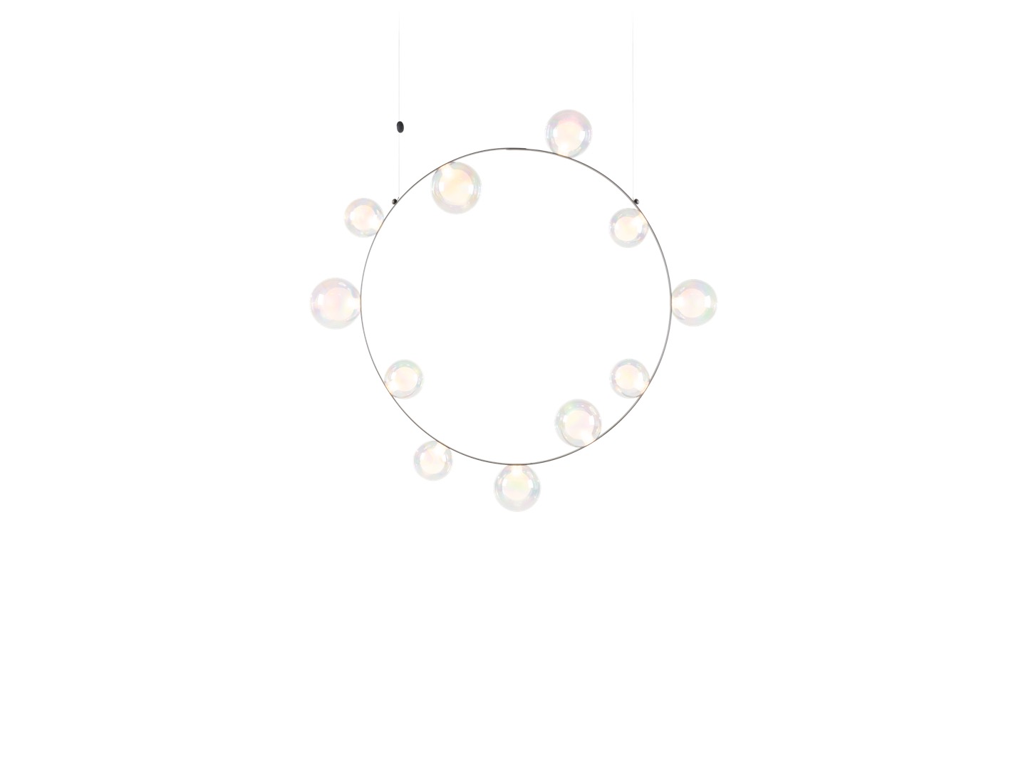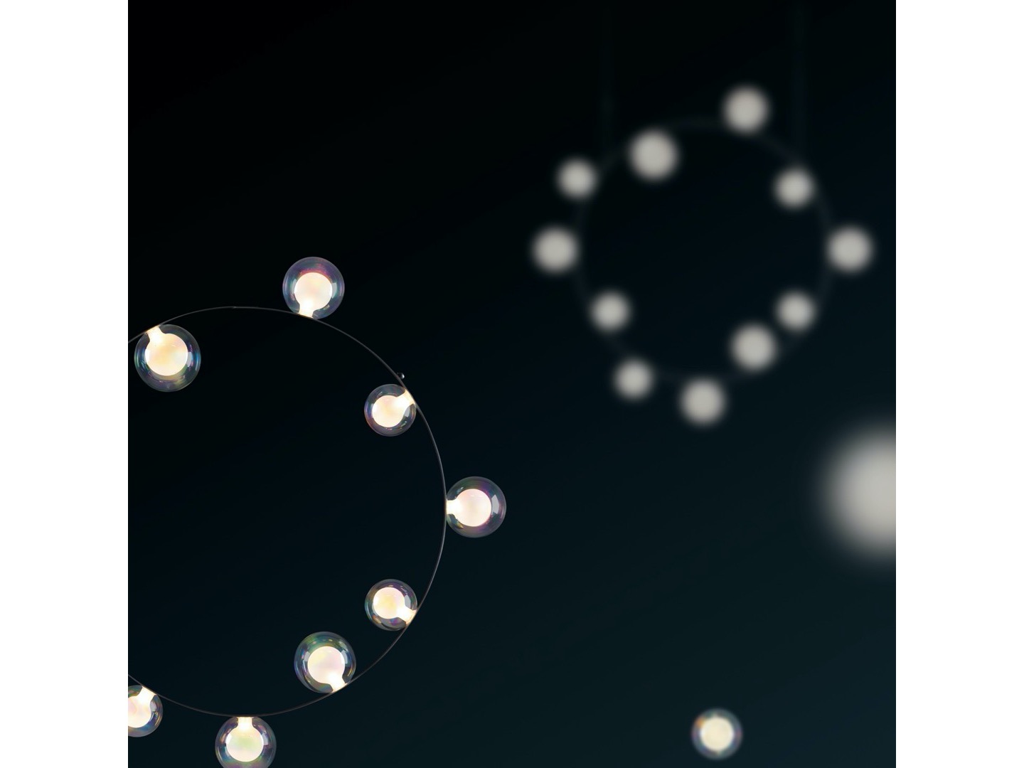 Hubble Bubble jest to lampa, którą zaprojektował Marcela Wanders. Na okrągłej metalowej ramie osadzonych jest 7 lub 11 szklanych baniek LED, dostępnych w wersji: oil-iridescent i frosted.