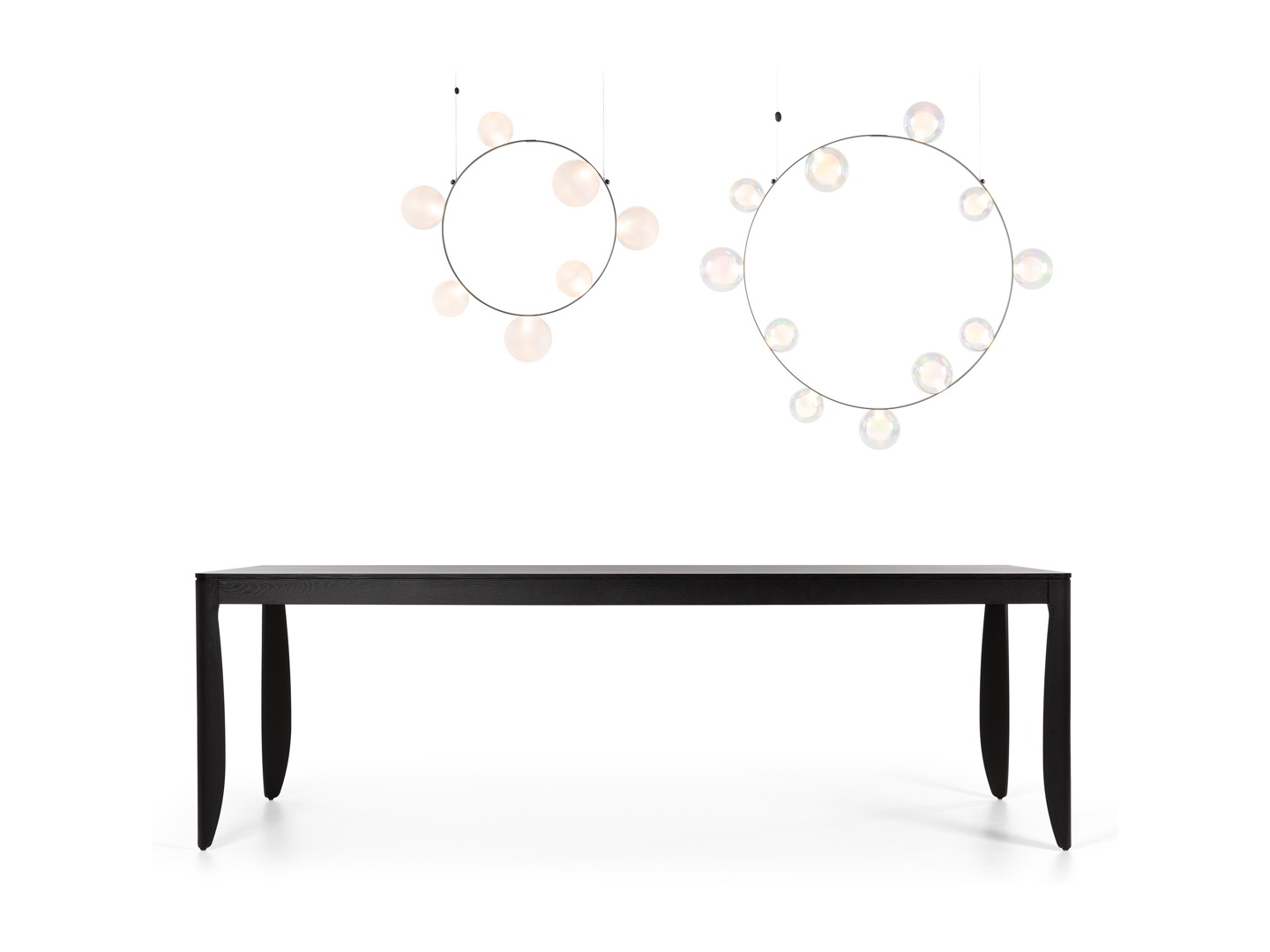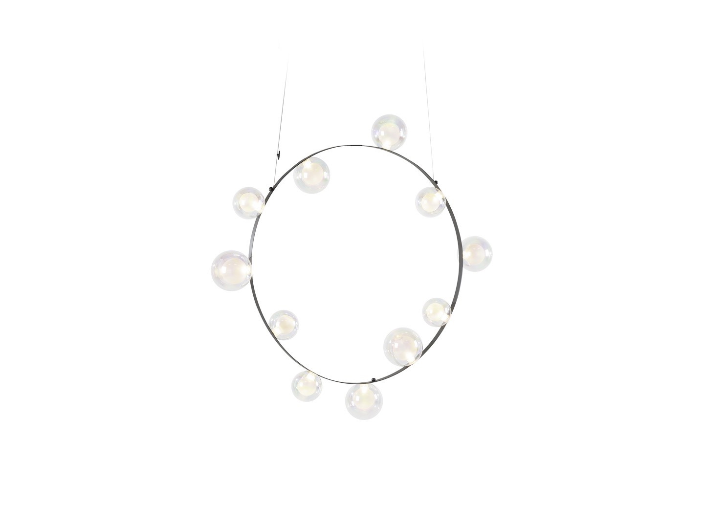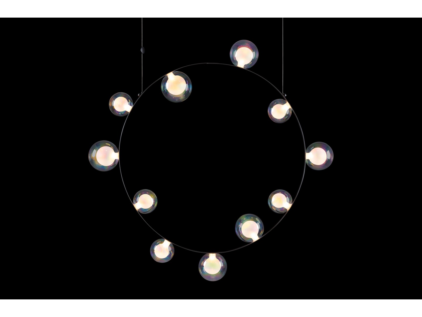 Hubble Bubble jest to lampa, którą zaprojektował Marcela Wanders. Na okrągłej metalowej ramie osadzonych jest 7 lub 11 szklanych baniek LED, dostępnych w wersji: oil-iridescent i frosted.