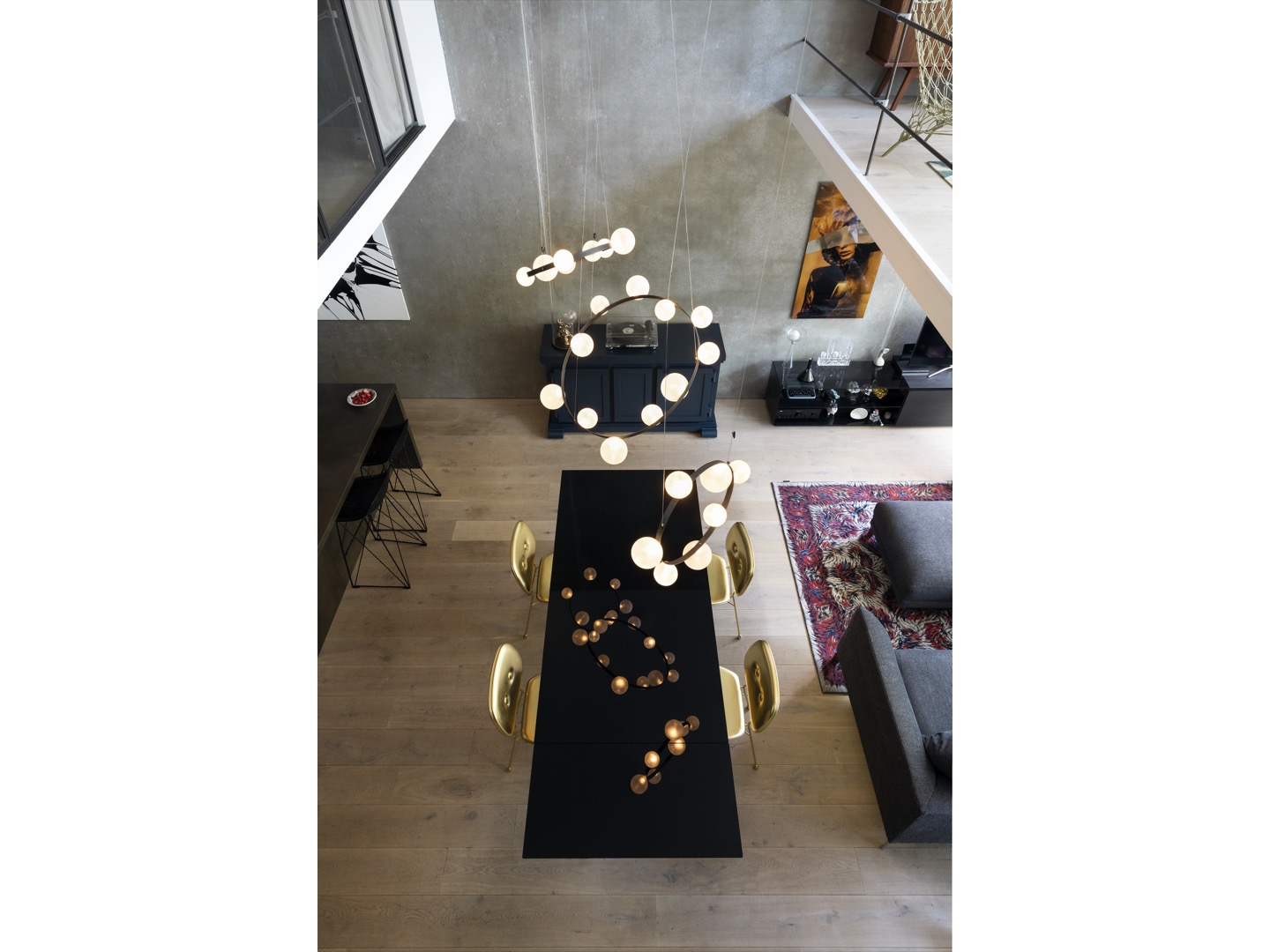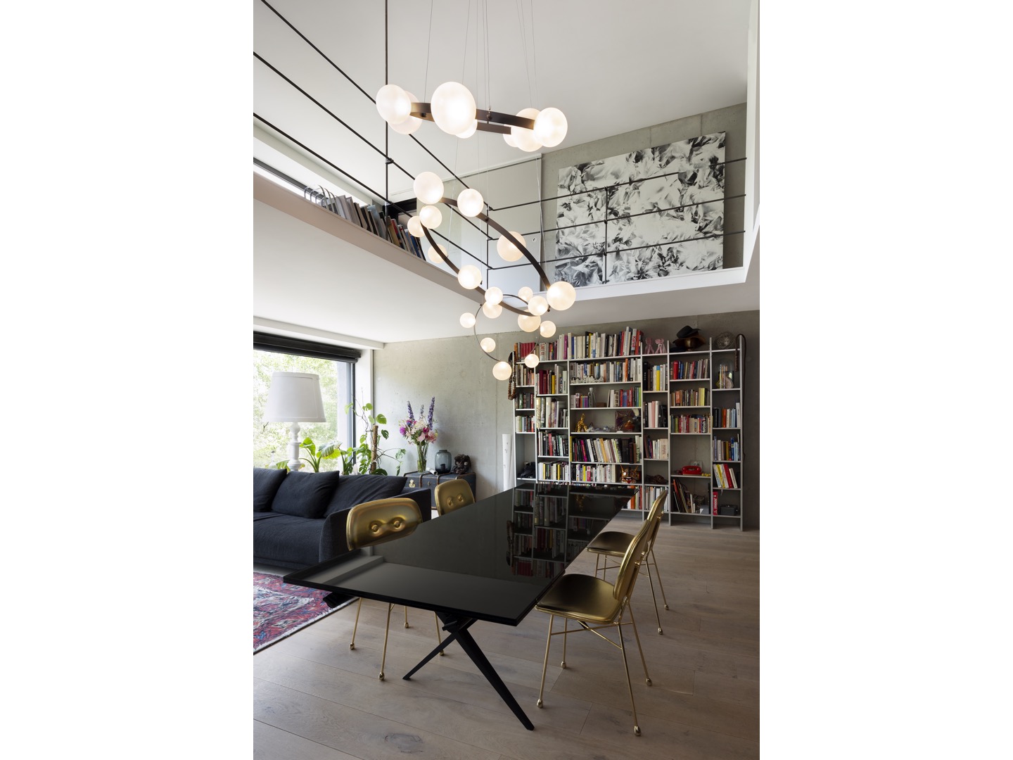 Hubble Bubble można zawiesić zarówno poziomo, jak i pionowo. Zasilany jest przez Electrosandwich® firmy Marcel Wanders.