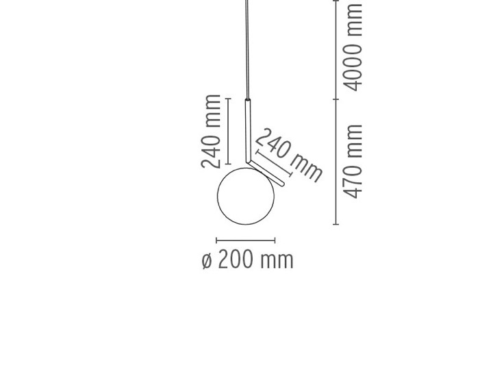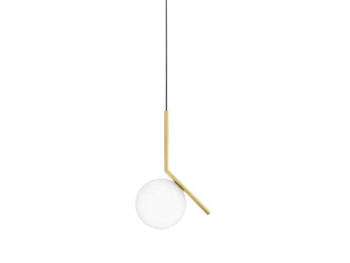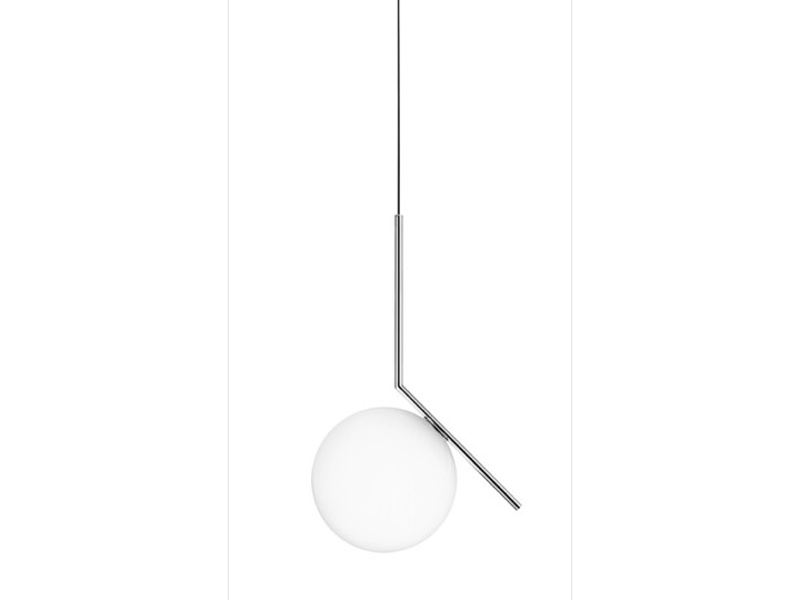 Lampa wisząca z kolekcji IC. Szklana kula na metalowym, prostym ramieniu. Całość zawieszona na przewodzie. Minimalistyczna lampa, która dzięki chromowanemu albo mosiężnemu wykończeniu nabiera dość ekskluzywnego charakteru.