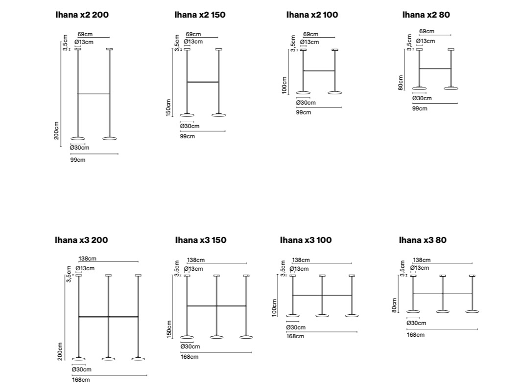 Aby zapewnić oświetlenie otoczenia dla każdego klasycznego lub współczesnego projektu aranżacji wnętrz, kolekcję tę można wykorzystać do tworzenia kompozycji świetlnych. Umożliwia to jej konstrukcja, którą można rozbudować o 14 dyfuzorów, połączonych z jednym punktem świetlnym. Jest dostępny w różnych rozmiarach, aby oświetlać również pomieszczenia z wysokimi sufitami. Ponadto Ihana posiada technologię dim to Warm, która pozwala nie tylko regulować intensywność światła, ale także jego temperaturę barwową, która może wahać się od ciepłej bieli (3000 K) do ultra ciepłej bieli, symulującej światło świecy (1800 K).