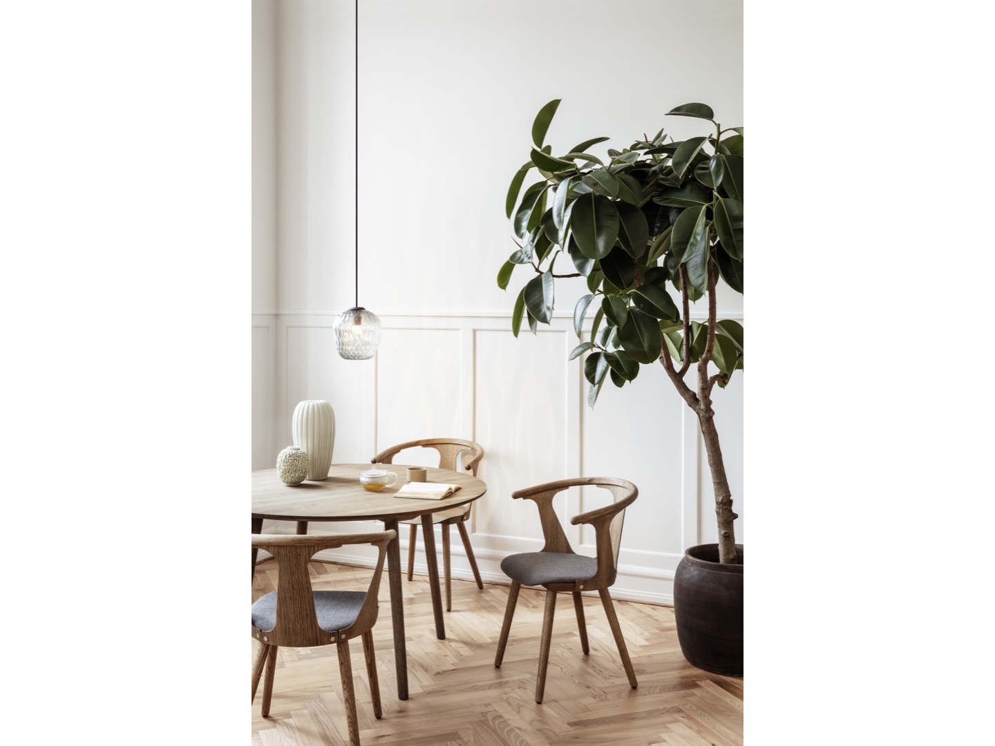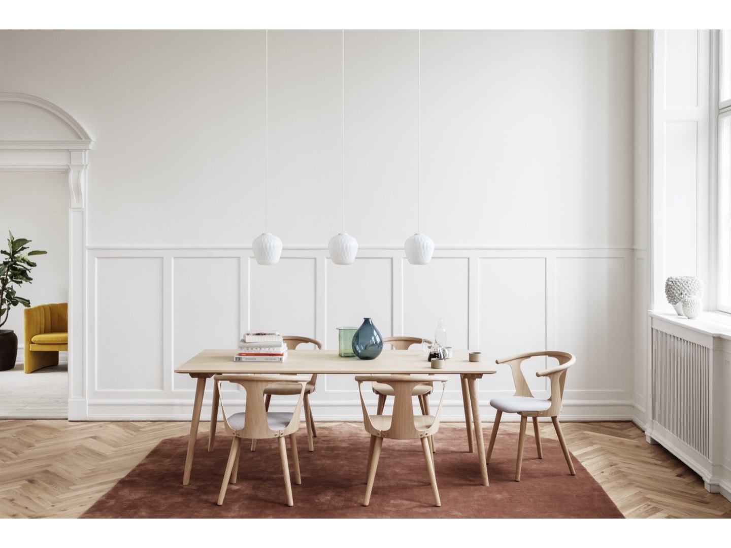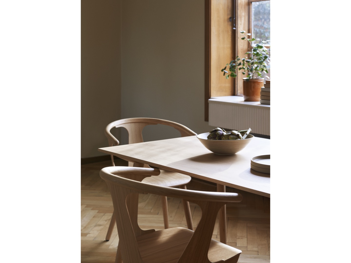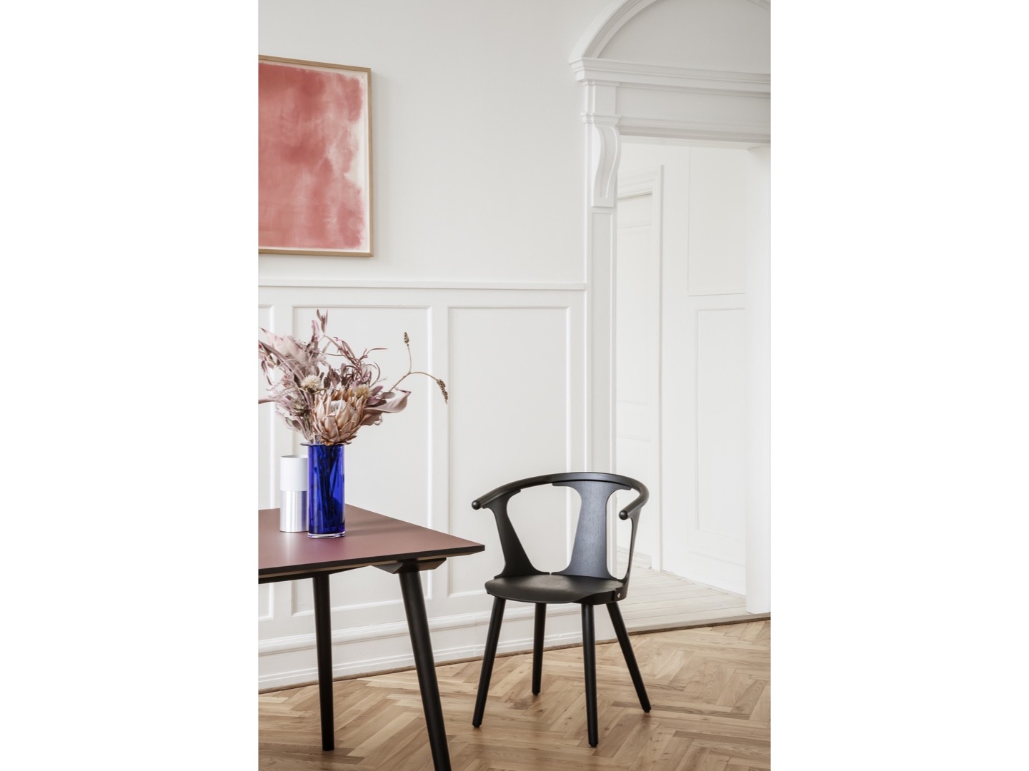 Zainspirowany skandynawskim dziedzictwem wzornictwa i rzemiosła meblarskiego, In Between jest wynikiem solidnego osadzenia Samiego Kallio w tradycyjnych technikach obróbki drewna i jego wyczucia dla genialnych szczegółów. Zaczęło się od pojedynczego krzesła, co później zaowocowało serią mebli, obejmującą zarówno stoły, jak i krzesła.