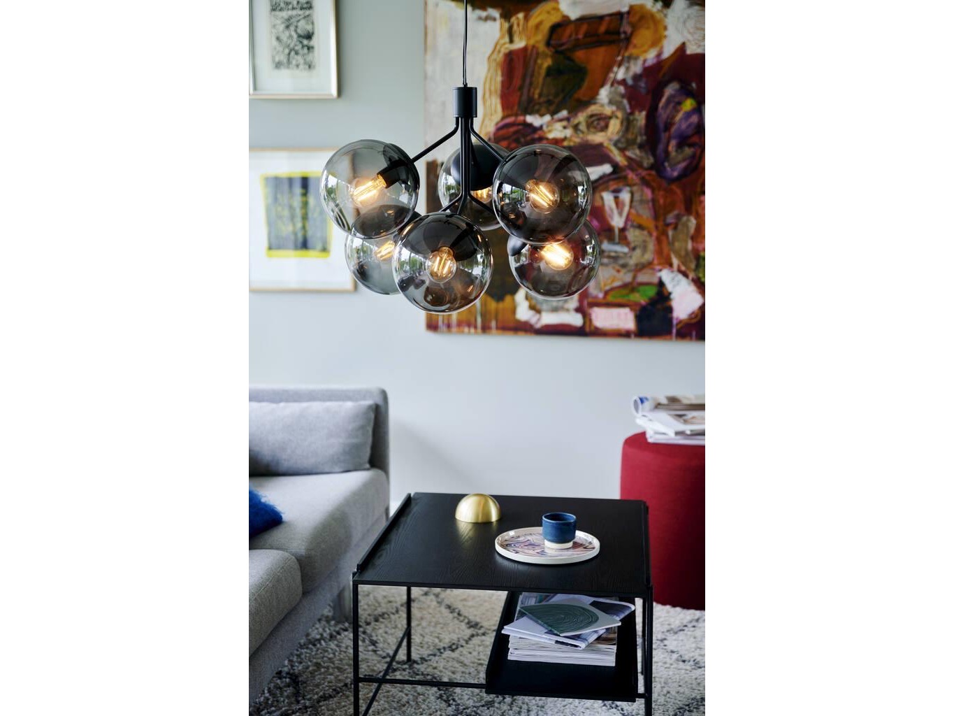 Czarna stal i przydymione szkło tworzą chłodny, industrialny wygląd. Dodaj ozdobną żarówkę, aby stworzyć własny projekt.