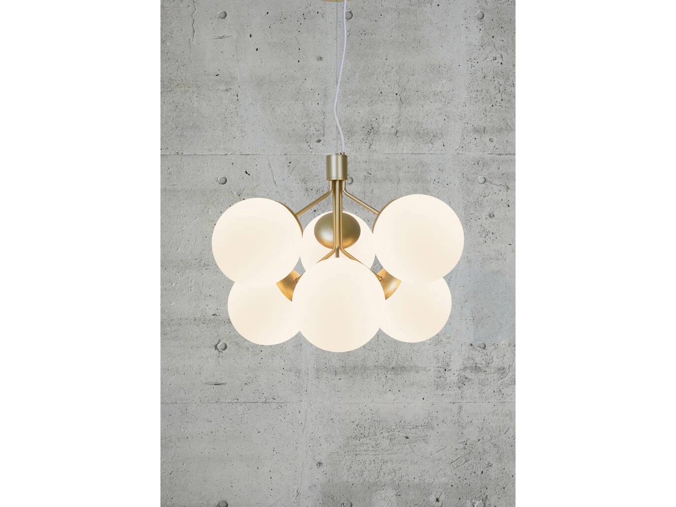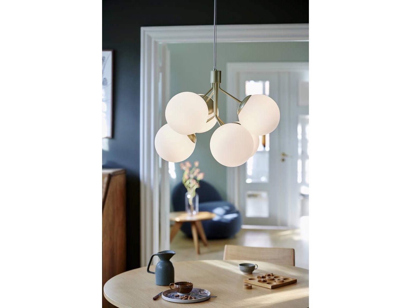 Połączenie mosiądzu i szkła opalowego tworzy efektowny i elegancki wyraz designu.