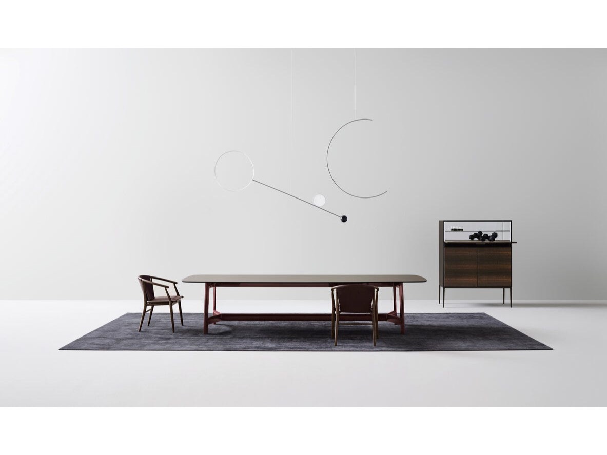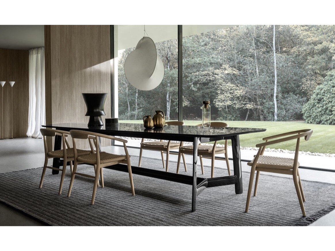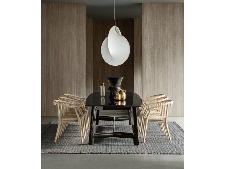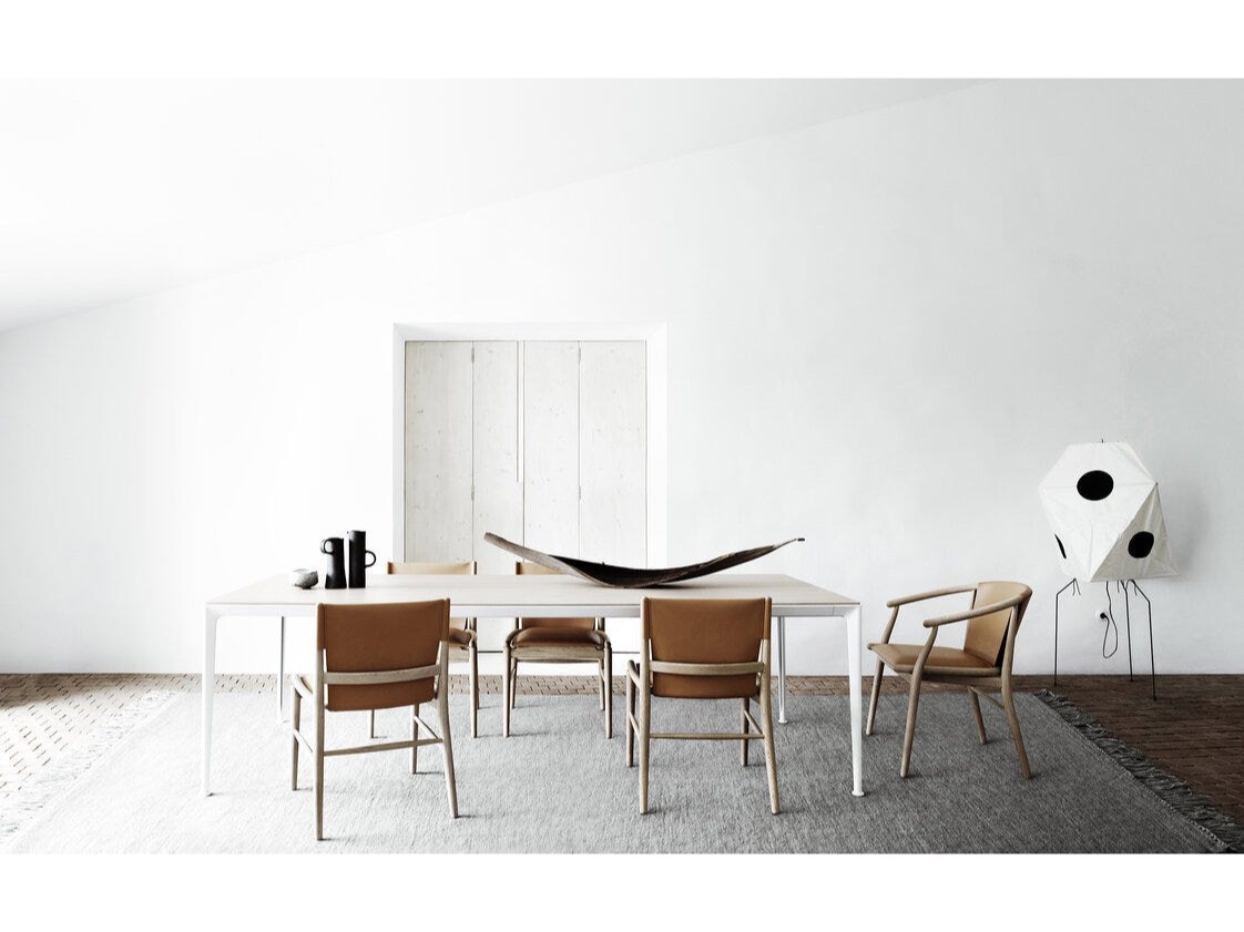 Jens to kolekcja krzeseł i stołków w typowym stylu lat 50., ale również nawiązująca do klasycznych chińskich krzeseł we współczesnej tonacji. Rezultatem ponownego odkrycia kunsztu toczonego i zakrzywionego drewna jest pięcioosiowa rama w różnych wykończeniach drewna. W kolekcji dostępne są liczne wersje: w całości w drewnie, z drewnianą ramą i skórzanym siedziskiem, z drewnianą ramą i grubym skórzanym siedziskiem i oparciem, z drewnianą ramą i siedziskiem z plecionej liny celulozowej.