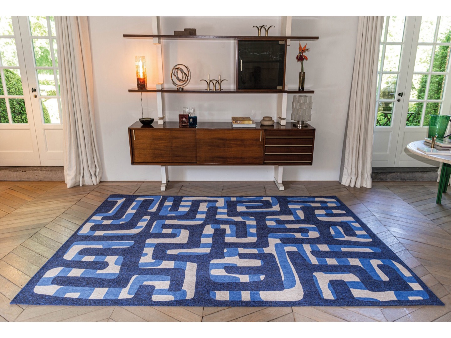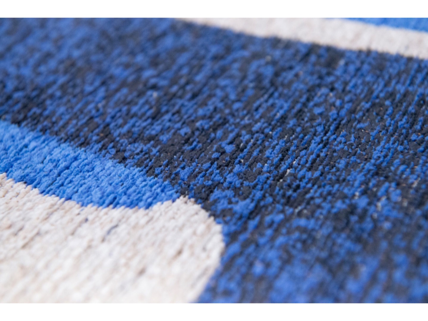 Abstrakcyjny Niebieski Dywan – KUBA ULTRAMARINE 9336, cenionej belgijskiej marki Louis De Poortere, z kolekcji Craft.