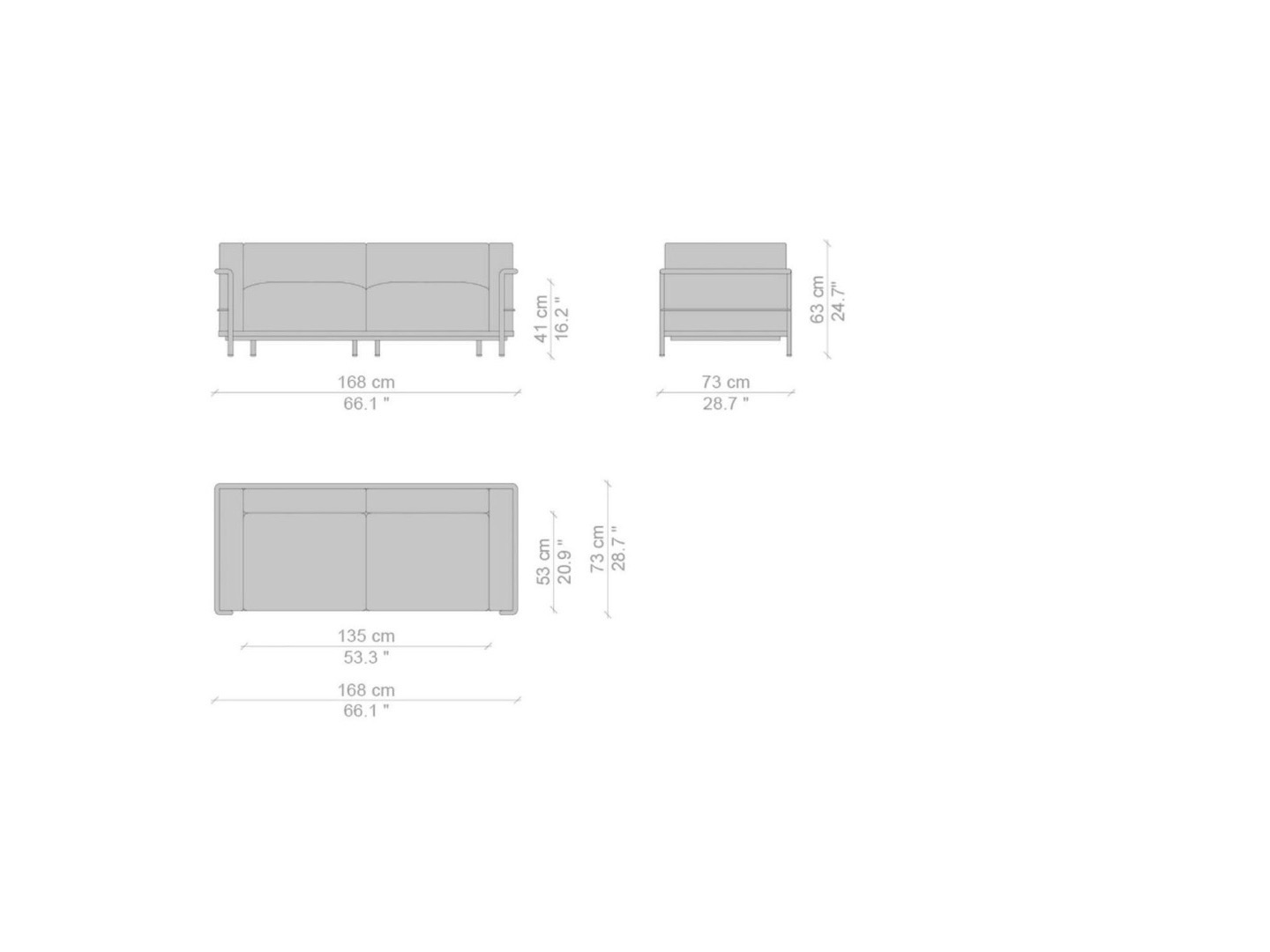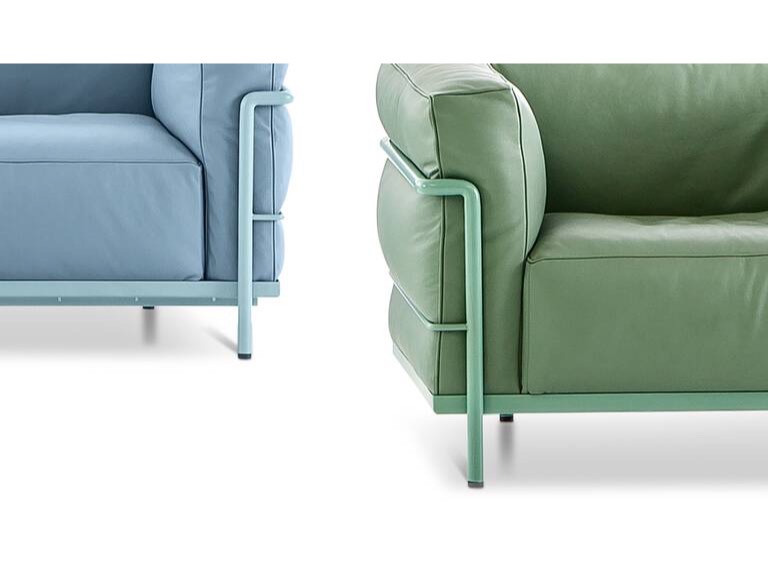 Kolekcja obejmuje sofy dwu- i trzyosobowe oraz pufę ze strukturami ze stali chromowanej lub malowanej w palecie kolorów LC. LC2 to ponadczasowy model, który przeszedł do historii designu. Fotel zaprojektowany w 1928 r. i wystawiony na Salon d'Automne w Paryżu w 1929 r. jest archetypem fotela w nowoczesnej koncepcji.