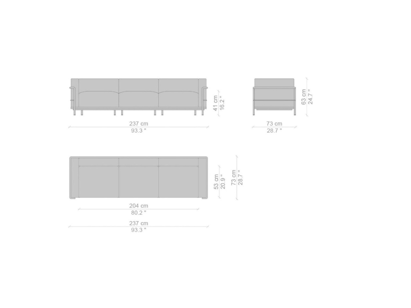LC3 skonstruowane jest ze stalowych rur, które stanowią główną podporę sofy. Kolekcja składa się z foteli z dwoma podłokietnikami i foteli z lewym lub prawym podłokietnikiem, sof dwuosobowych lub trzyosobowych o konstrukcji ze stali chromowanej trójwartościowej (CR3) lub malowane w oryginalnej palecie kolorów Le Corbusiera. Tapicerka poduszek wykonana jest z tkaniny lub skóry.