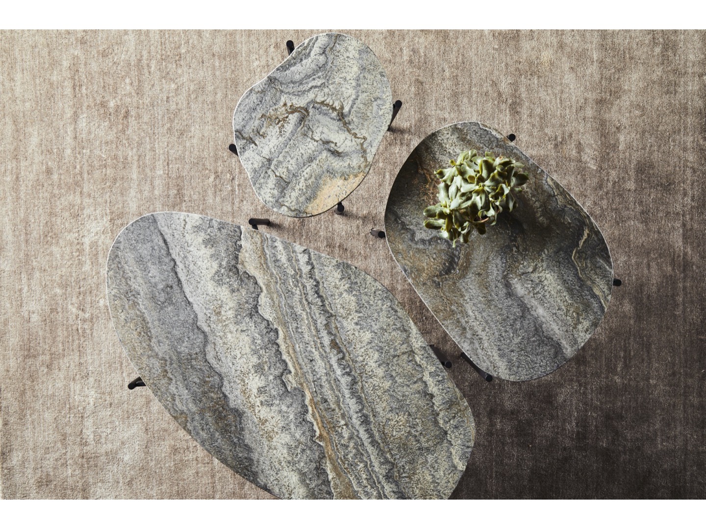 Stół La Terra to harmonijny i wyrafinowany dodatek do Twojego domu. Inspirowany naturą projekt, pięknie łączy organiczne kształty i stonowane kolory. Każda powierzchnia została wykonana z trawertynu i jest wyjątkowa. Dzięki trzem różnym dostępnym rozmiarom i wysokościom, stół można ustawić jako pojedynczy element lub stworzyć kompozycje.