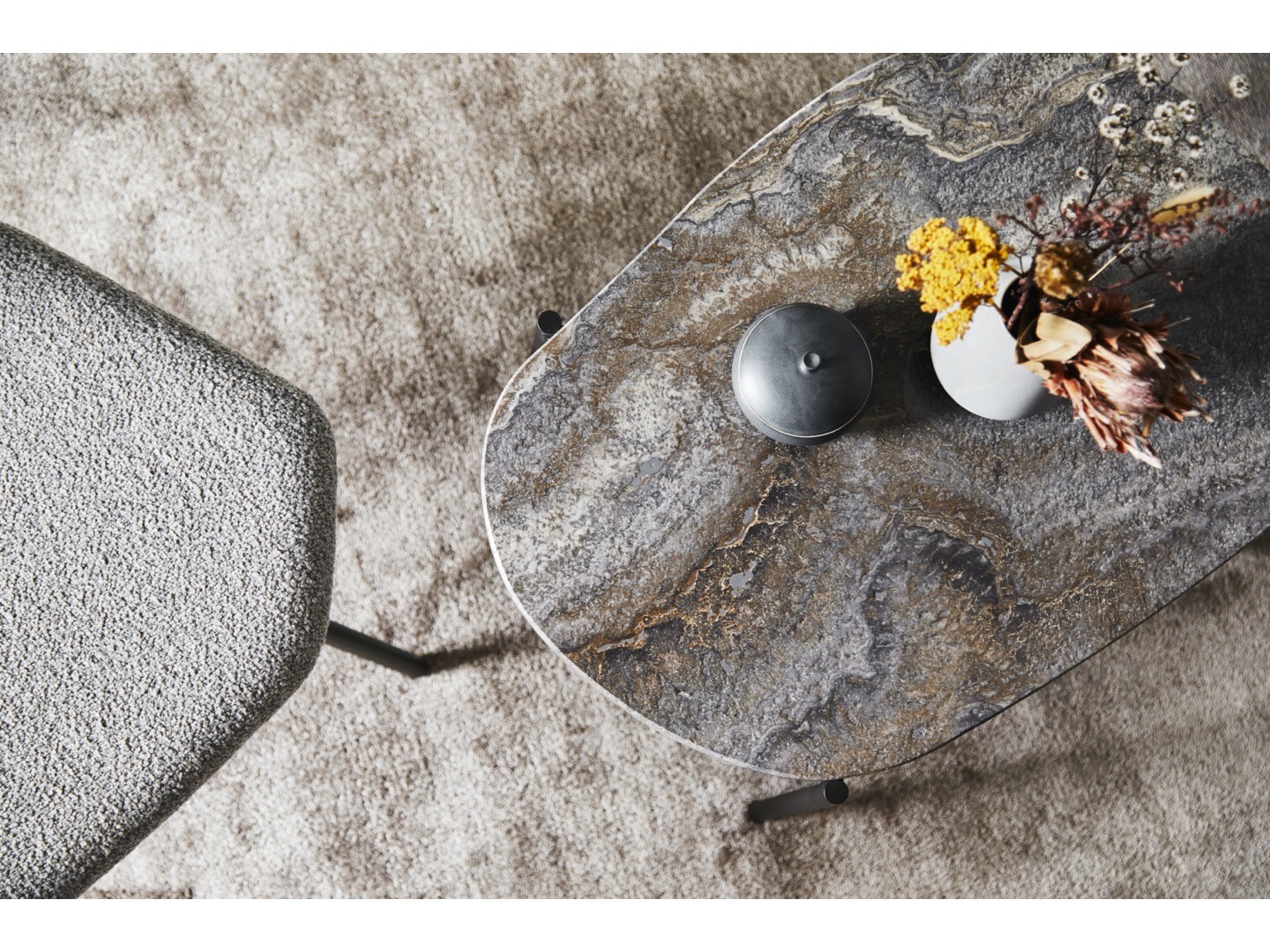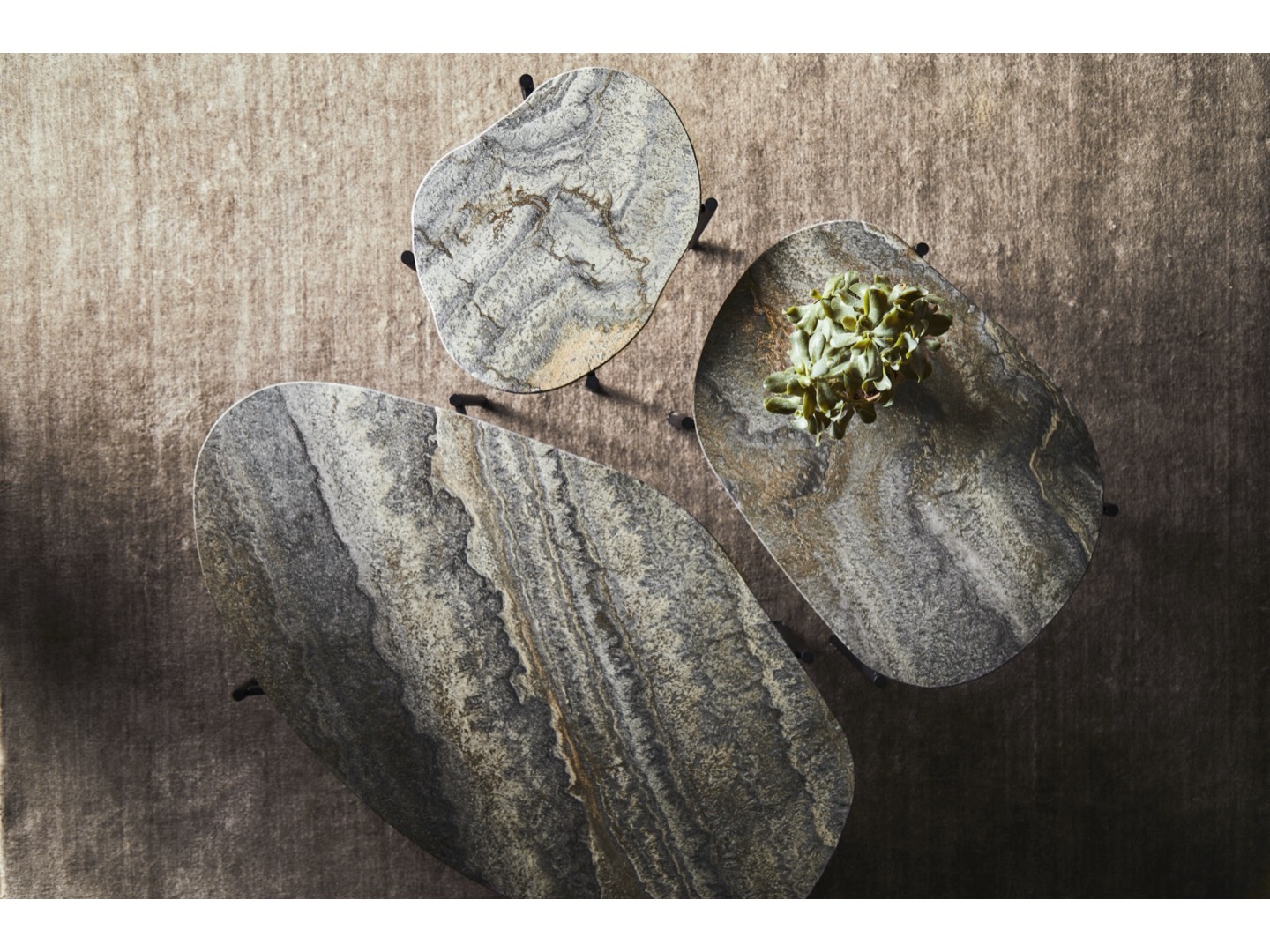 Stół La Terra to harmonijny i wyrafinowany dodatek do Twojego domu. Inspirowany naturą projekt, pięknie łączy organiczne kształty i stonowane kolory. Każda powierzchnia została wykonana z trawertynu i jest wyjątkowa. Dzięki trzem różnym dostępnym rozmiarom i wysokościom, stół można ustawić jako pojedynczy element lub stworzyć kompozycje.