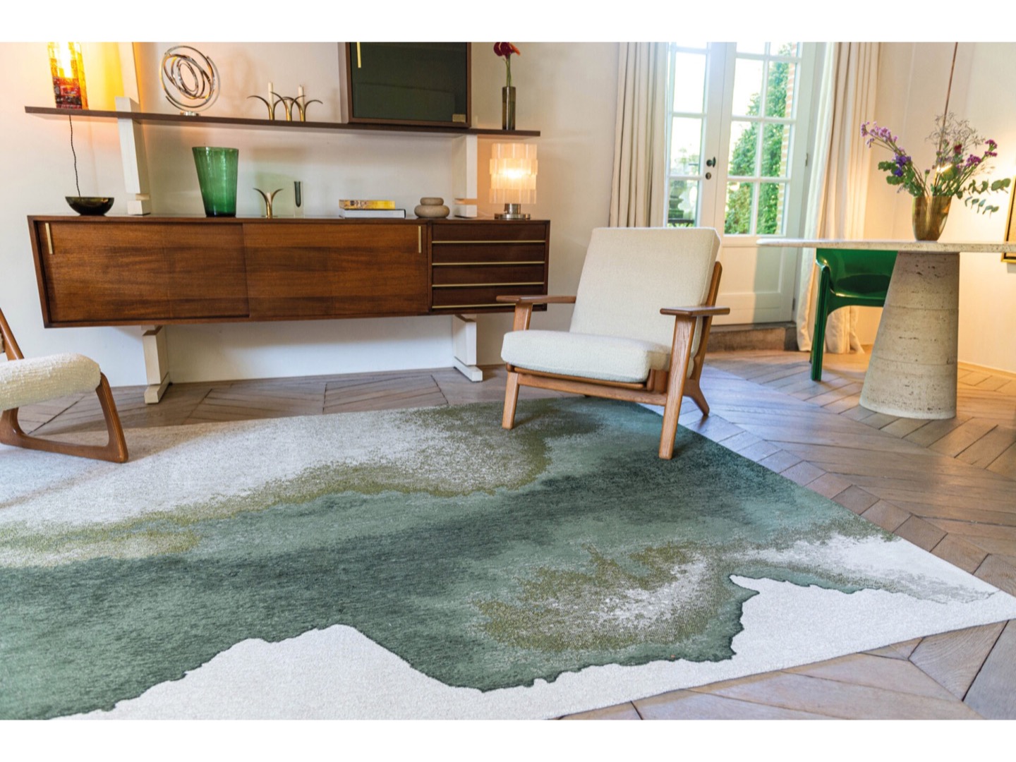 Nowoczesny Zielony Dywan – LAGOON PALM GREEN 9331, cenionej belgijskiej marki Louis De Poortere, z kolekcji Meditation.