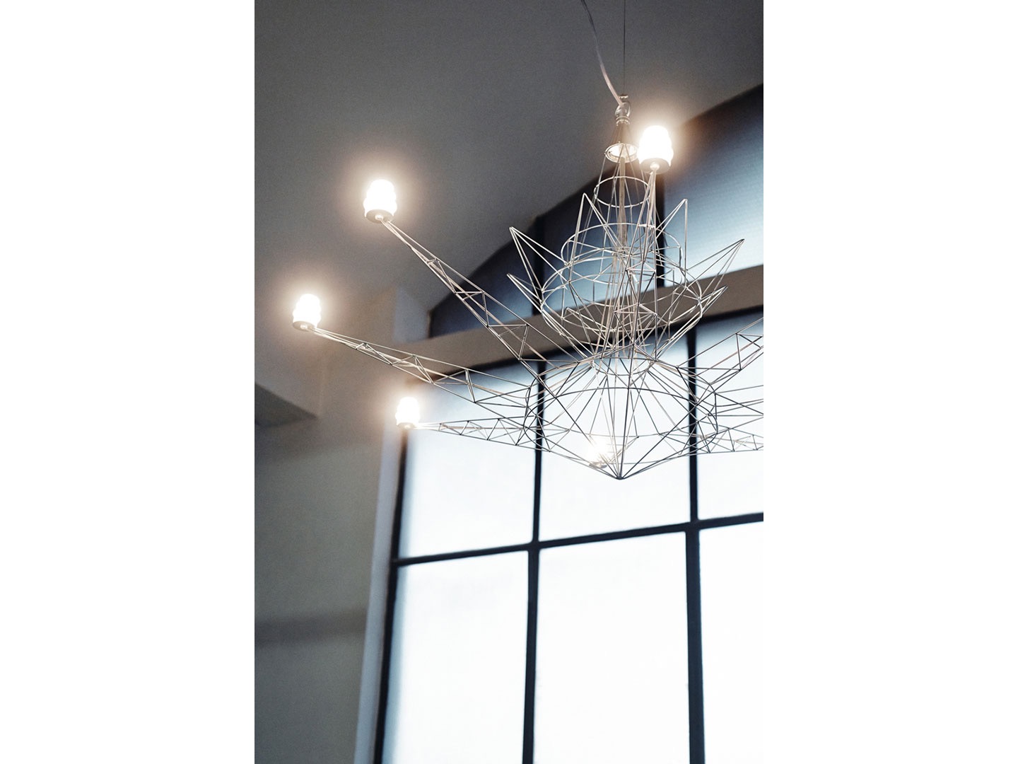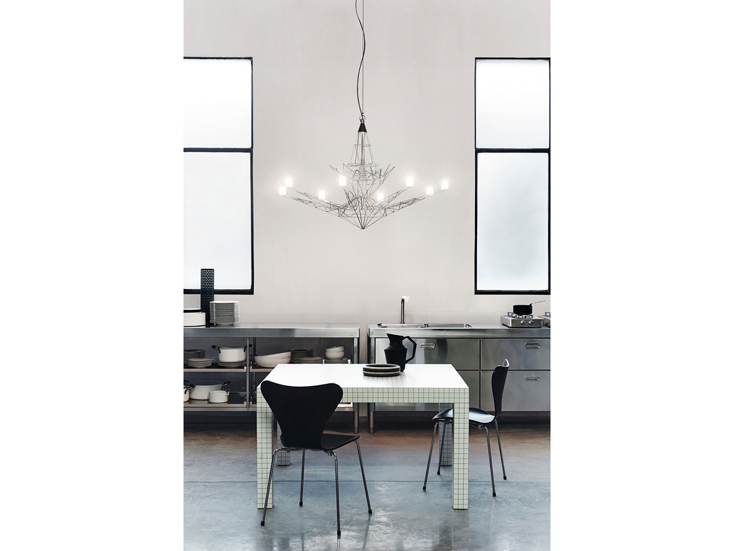 Lightweight swoją forma przypomina element słupa wysokiego napięcia. Techniczne i surowe ujęcie lampy wiszącej może stać się świetnym kontrastem dla wnętrz stylizowanych lub dużych przestrzeni biurowych o surowym klimacie. Lampa dopracowana w każdym, nawet najmniejszym szczególe zasługuje na Twoja uwagę.