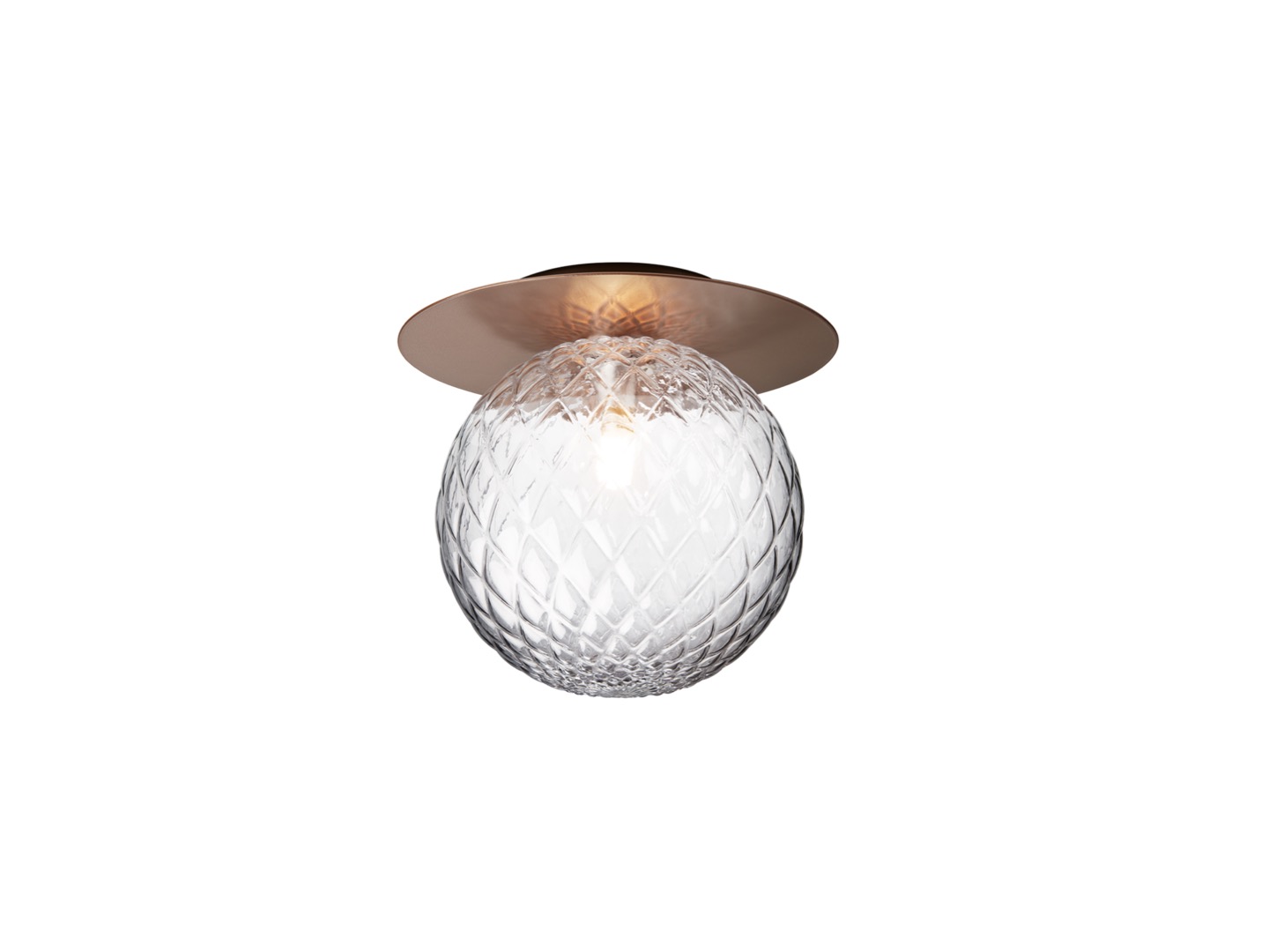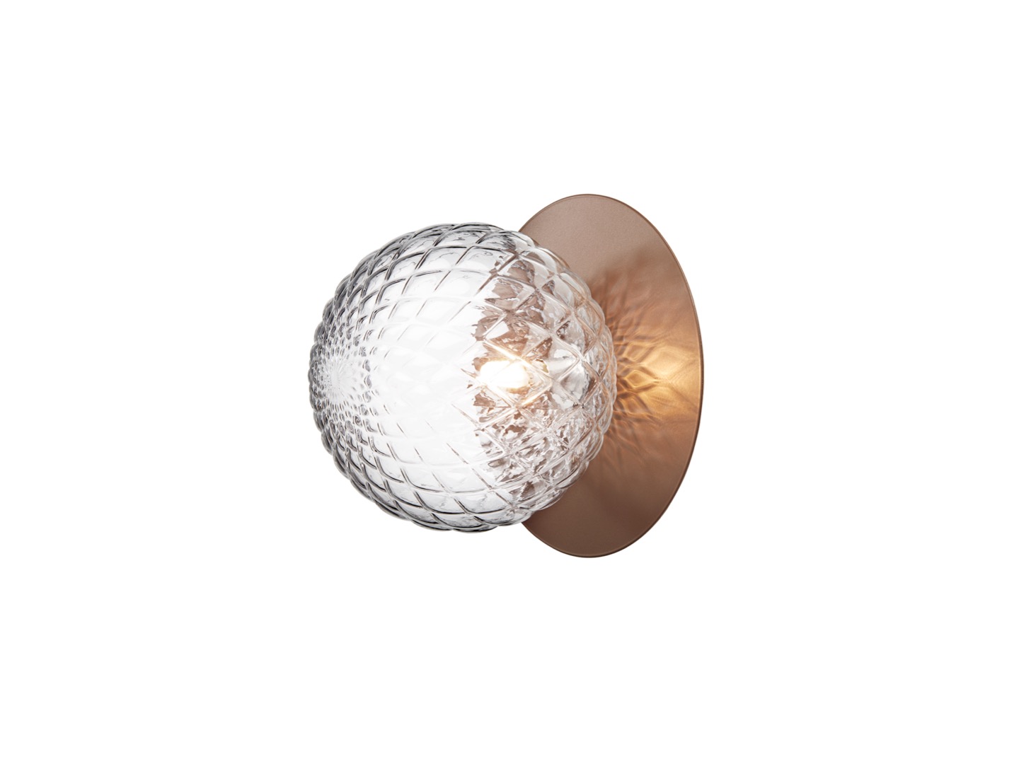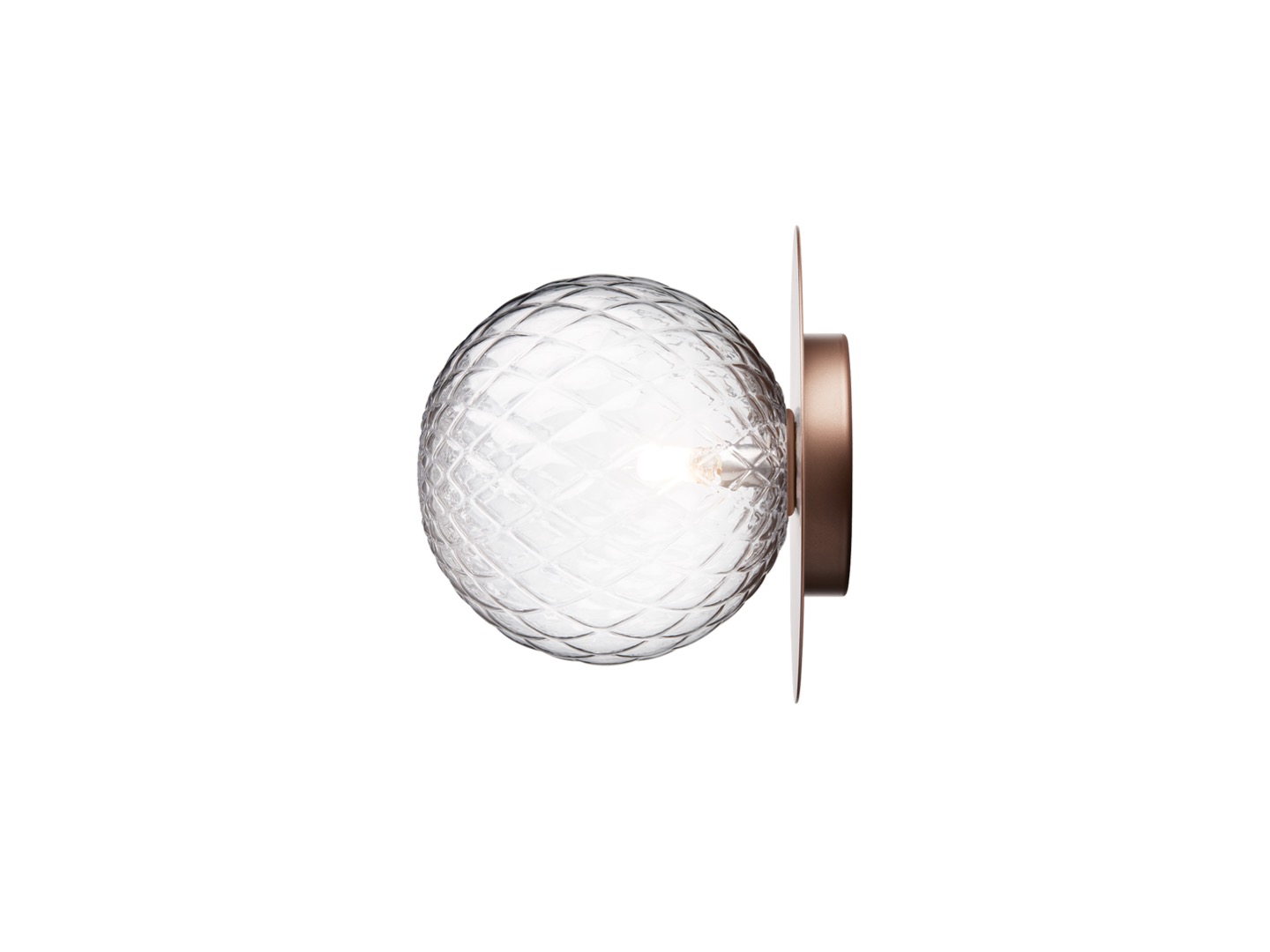 Liila 1 to pojedyncza lampa, która sprawdzi się na ścianie lub suficie. Jej prosta forma, składa się z cienkiego okrągłego arkusza metalu i wyjątkowej, dmuchanej kuli szkła. Liila 1 pasuje do mniejszych pokoi, łazienek i hali wejściowej.