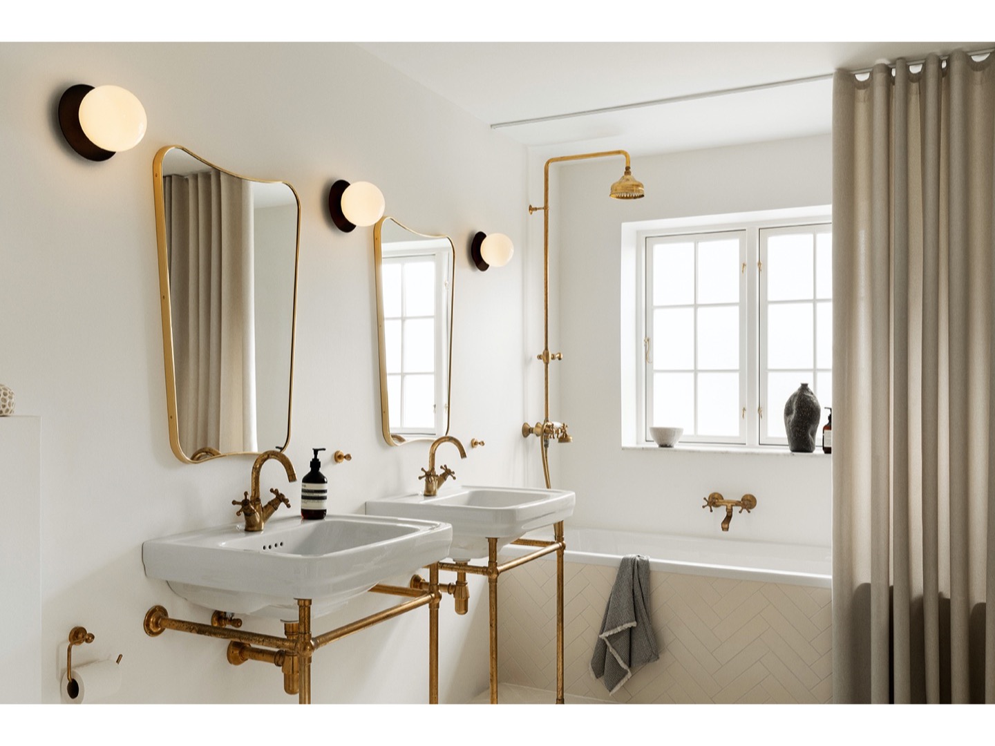 Liila 1 to pojedyncza lampa, która sprawdzi się na ścianie lub suficie. Jej prosta forma, składa się z cienkiego okrągłego arkusza metalu i wyjątkowej, dmuchanej kuli szkła. Liila 1 pasuje do mniejszych pokoi, łazienek i hali wejściowej.