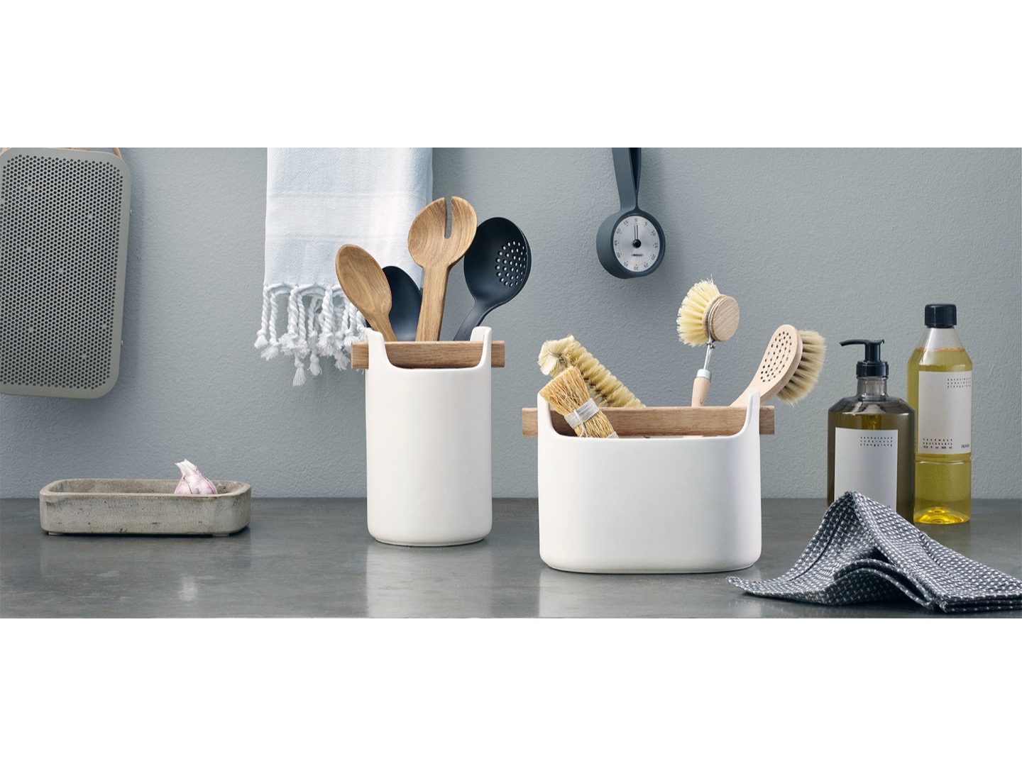 Dzięki organizerowi Toolbox możesz łatwo utrzymać porządek na blacie kuchennym lub biurku i uniknąć nieestetycznego bałaganu. Skrzynka Toolbox posiada drewnianą rączkę, która służy jako przegroda np. naczynia do zmywania. Idealny do porządkowania przyborów kuchennych, szczotek do zmywania, ściereczek do naczyń, czyścików lub ołówków, nożyczek i linijki.