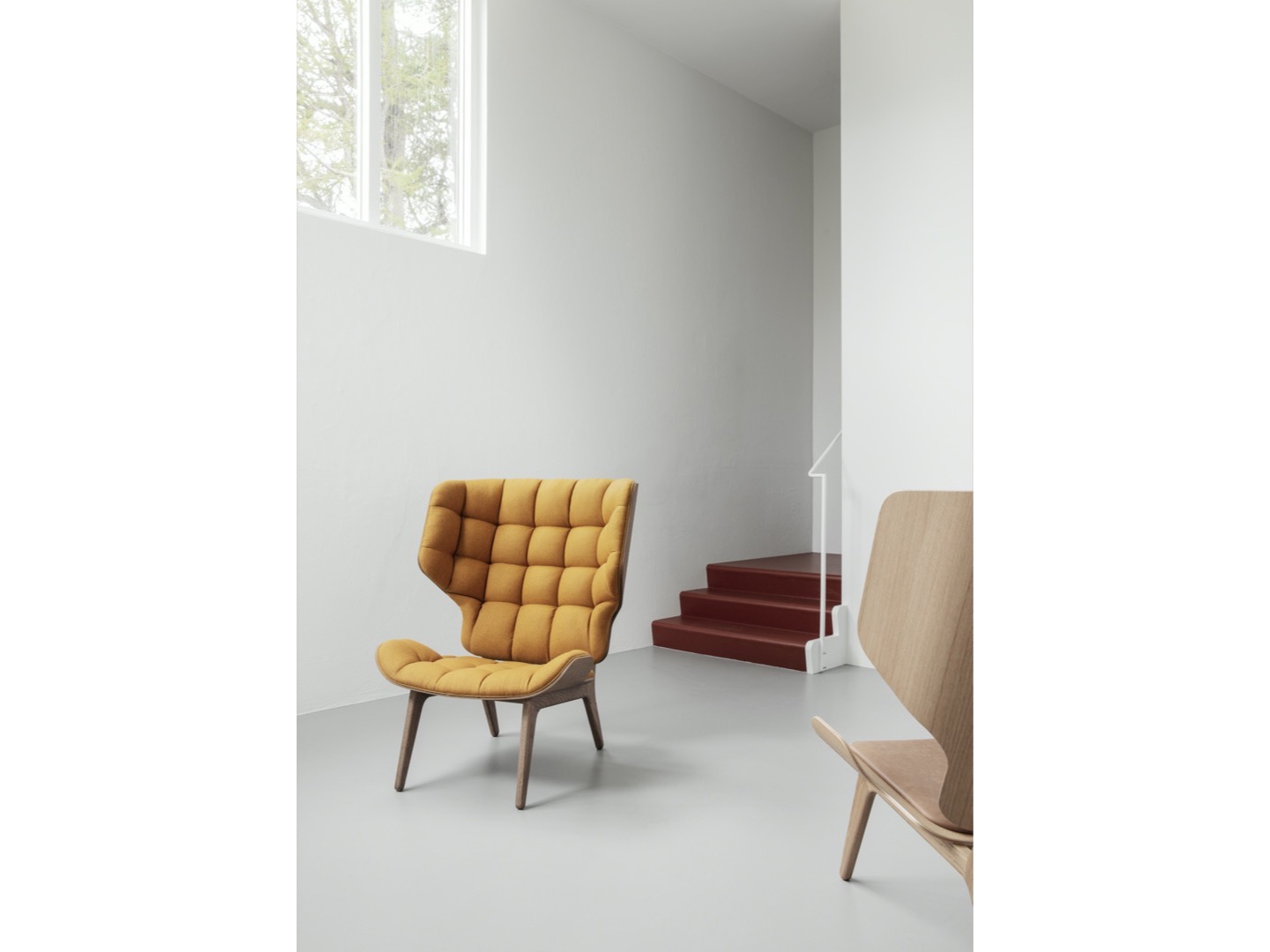 Krzesło Mammoth to przyjemne, nowoczesne krzesło. Wysokie oparcie, otulające skrzydła i puszysta tapicerka zapewniają najwyższy komfort i poczucie prywatności. Siedzisko i oparcie są wykonane z tej samej formy kompresyjnej, co nadaje krzesłu charakterystyczny, minimalistyczny wygląd. Połącz go z Mammoth Ottoman, aby uzyskać najwyższy komfort.