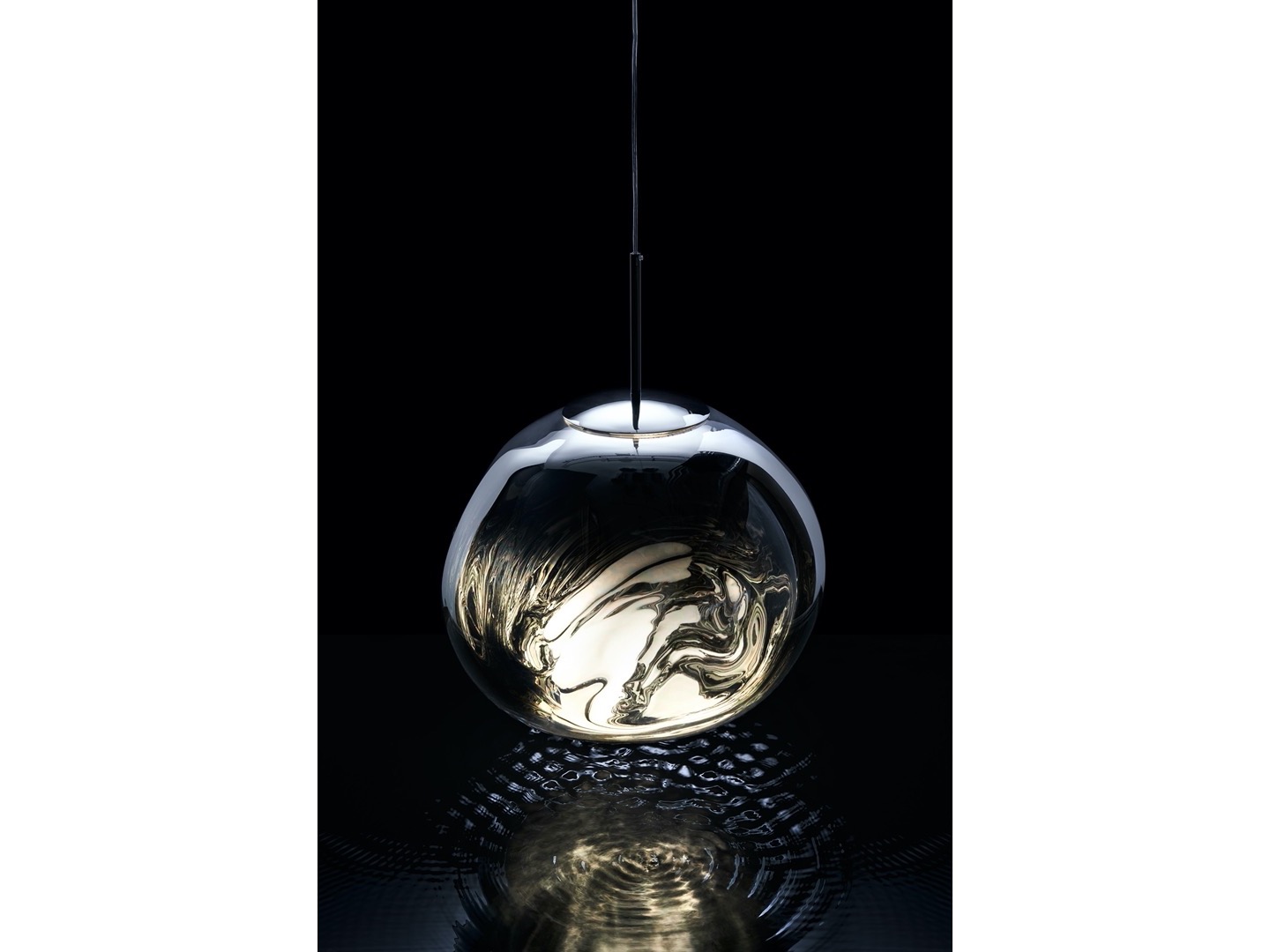 Metaliczna powłoka odbijając otoczenie gra jego kolorami, przez co integruje się praktycznie z każdym wnętrzem. Pomyśl, gdzie chcesz ją powiesić, zobacz pozostałe lampy z kolekcji Melt!