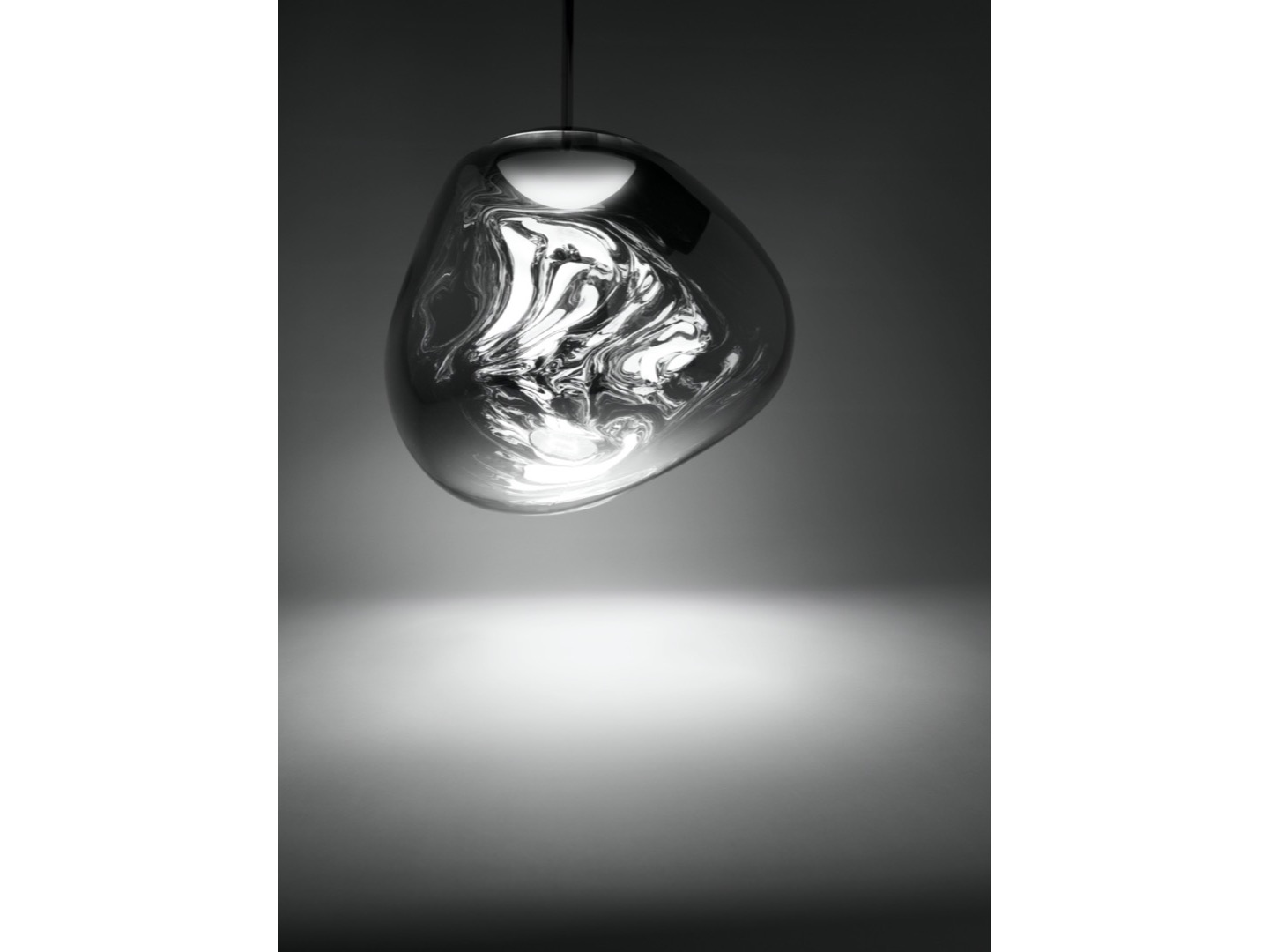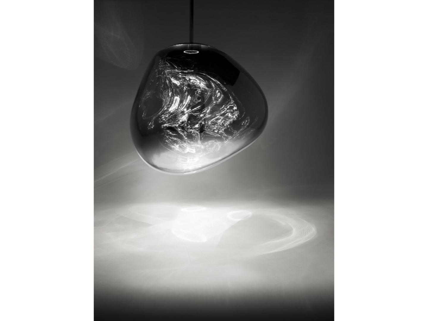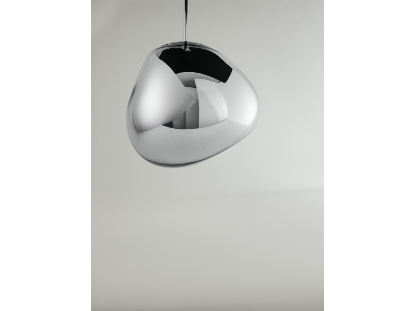 Melt Chrome to lampa, która wygląda jakby przed chwilą popłynęła, roztopiła się od gorąca i uformowała bezkształtną bryłę. Niczym zegar w obrazie 'Trwałość Pamięci' Salvadora Dali. Tom Dixon jak zwykle zaskakuje zabawą formą.