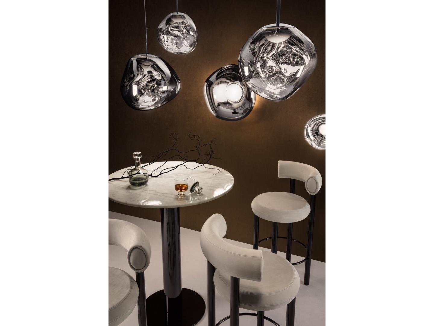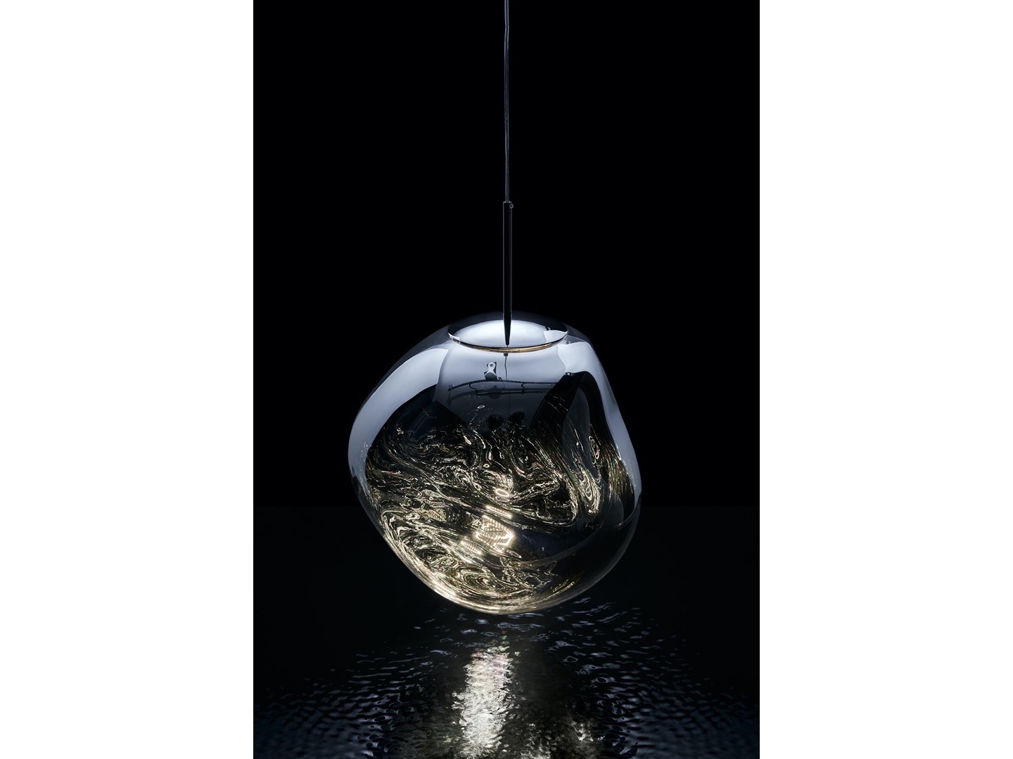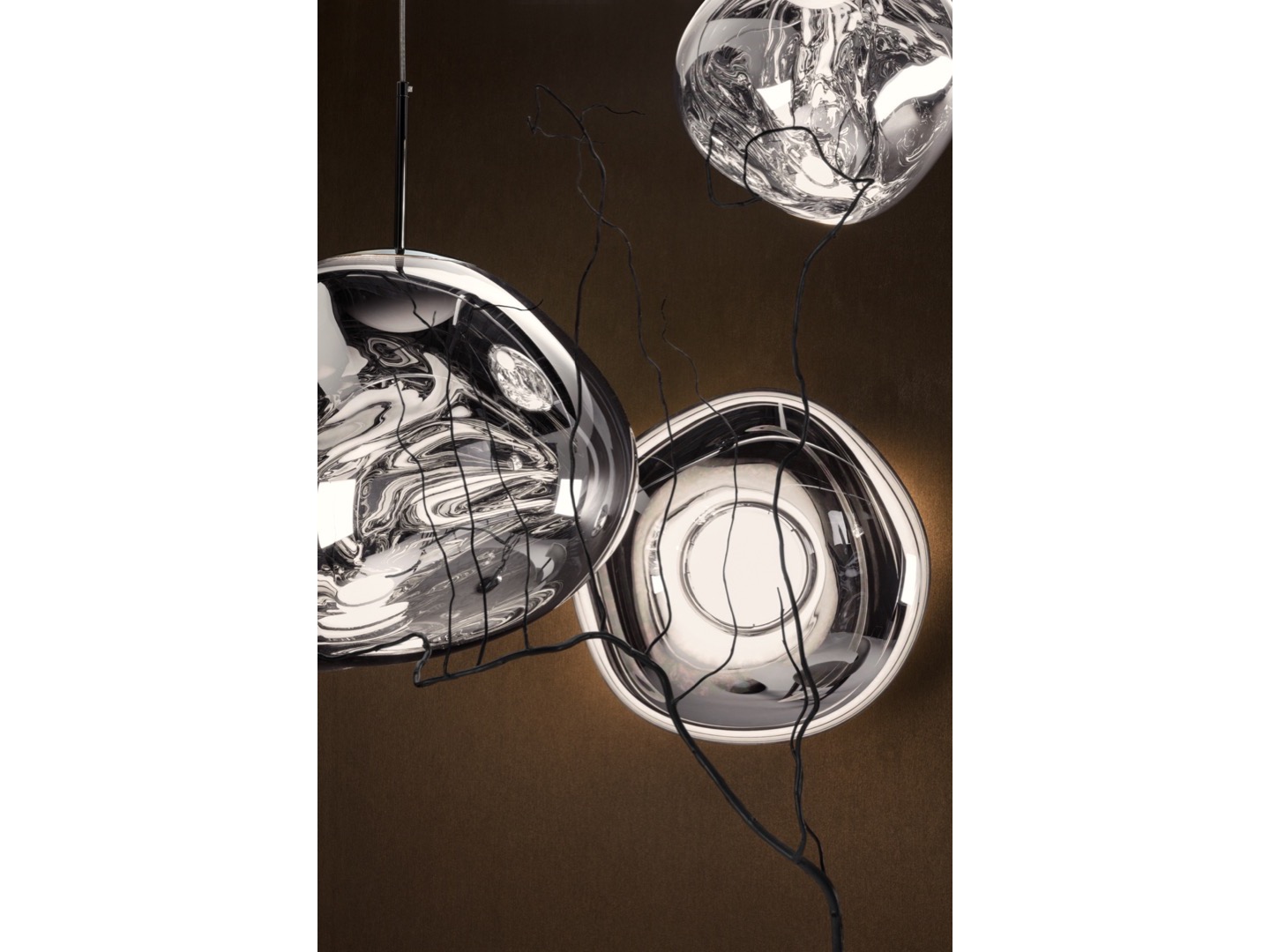 Melt Chrome to lampa, która wygląda jakby przed chwilą popłynęła, roztopiła się od gorąca i uformowała bezkształtną bryłę. Niczym zegar w obrazie 'Trwałość Pamięci' Salvadora Dali. Tom Dixon jak zwykle zaskakuje zabawą formą.