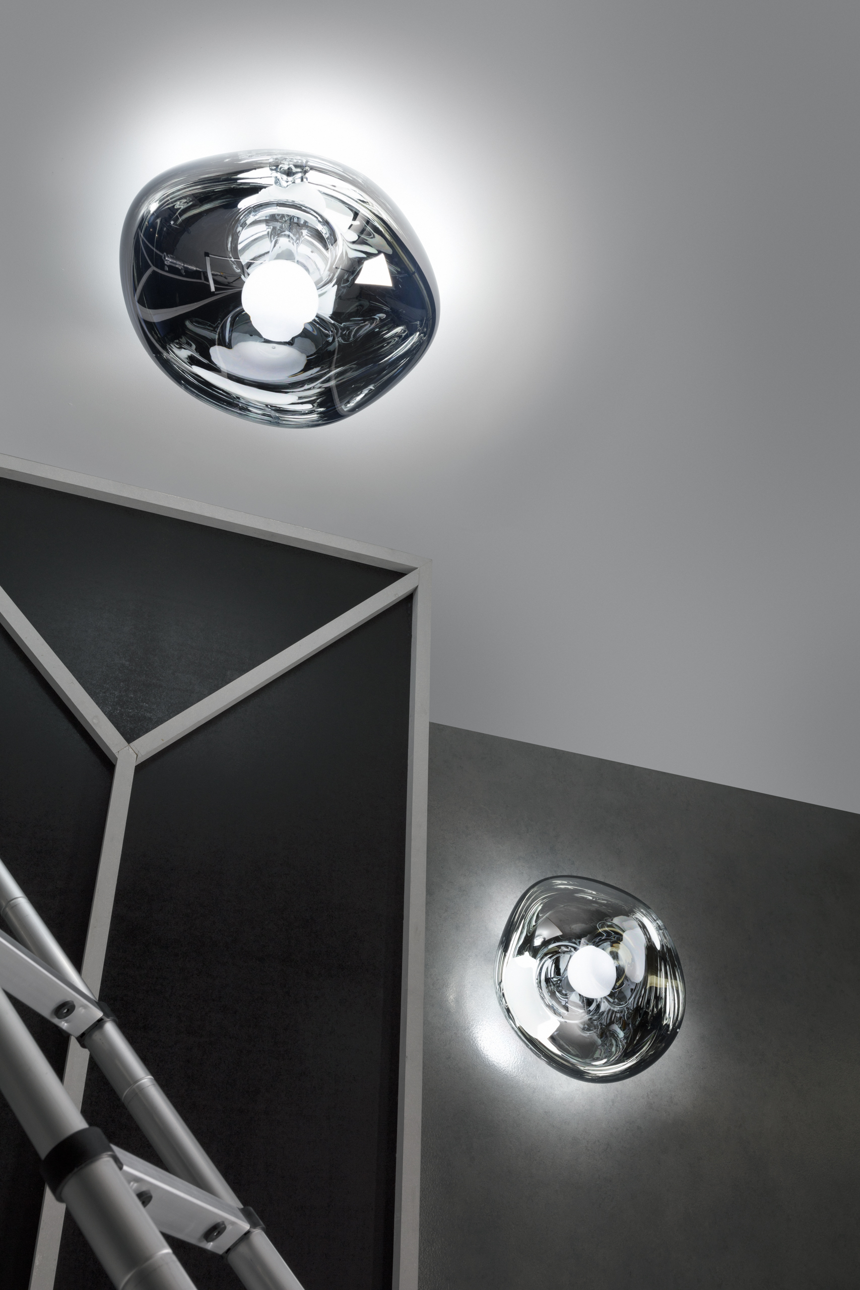 Melt Surface Chrome to lampa, która wygląda jakby przed chwilą popłynęła, roztopiła się od gorąca i uformowała bezkształtną bryłę. Niczym zegar w obrazie 'Trwałość Pamięci' Salvadora Dali. Tom Dixon jak zwykle zaskakuje zabawą formą.