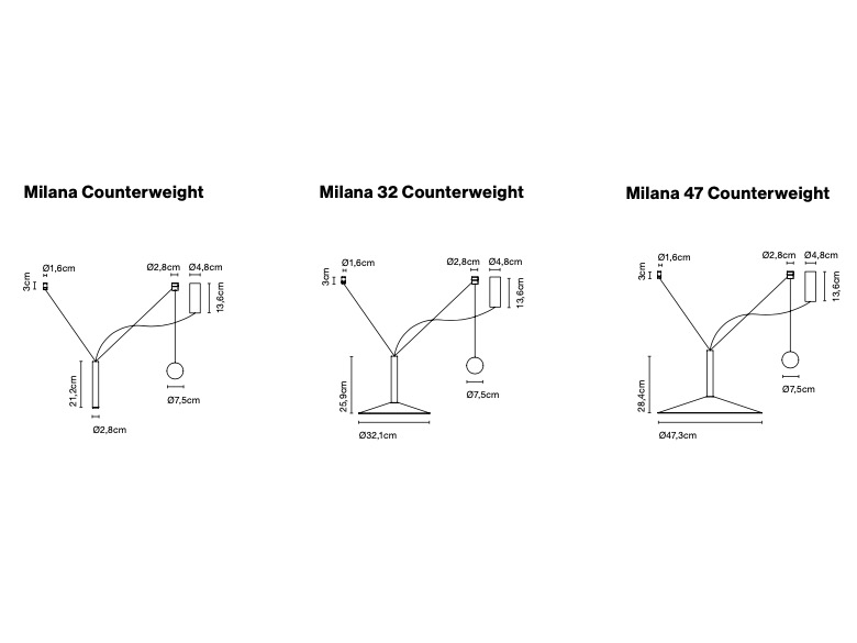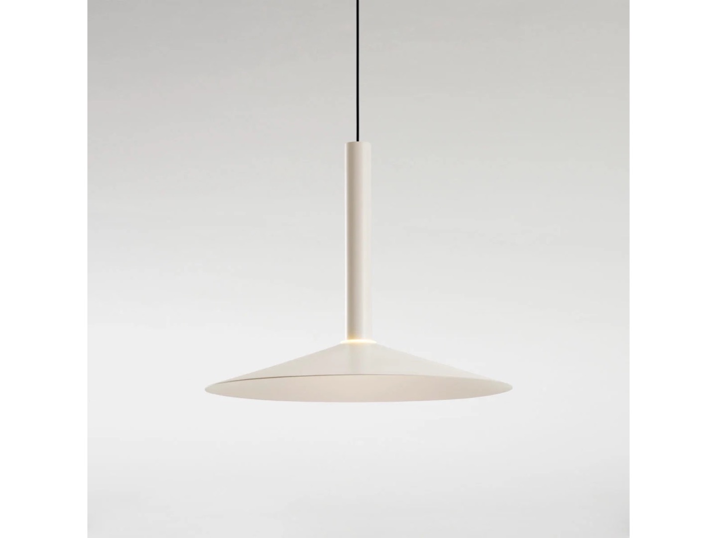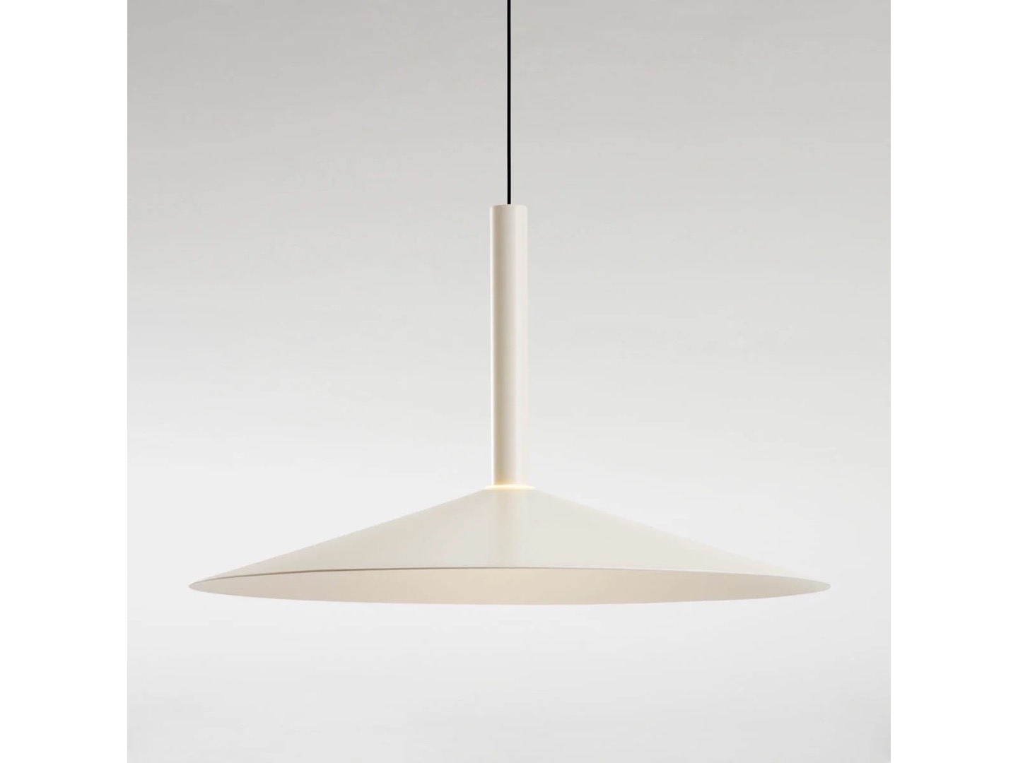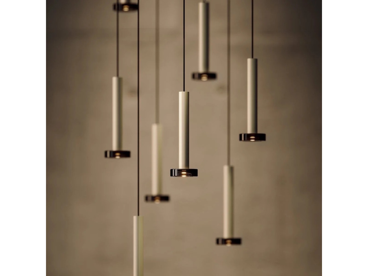 Paradoksalnie, nowy projekt zaczyna się od dekonstrukcji archetypu lampy; syntetyzując go w miarę możliwości, pozostaje tylko cylindryczny korpus, zawieszony z wbudowaną diodą LED. Do tego cylindra możemy dodać różne stożki w kolorze ostrygowym białym i czarnym w kilku rozmiarach. Ale najbardziej pomysłowe ze wszystkiego jest to, że każda z tych lamp może mieć prostą przeciwwagę, dzięki czemu po zawieszeniu między dwoma punktami można ją przesuwać.