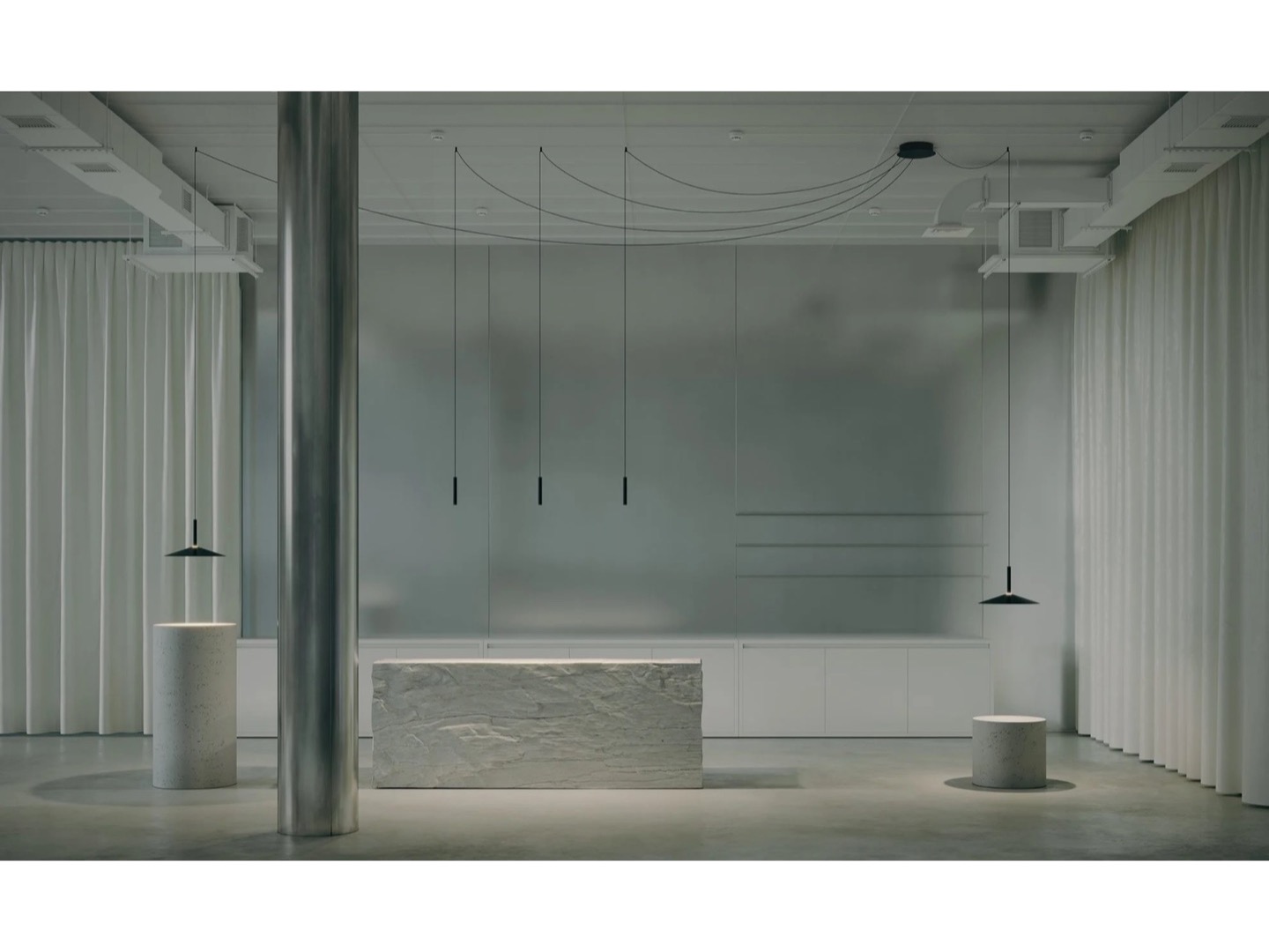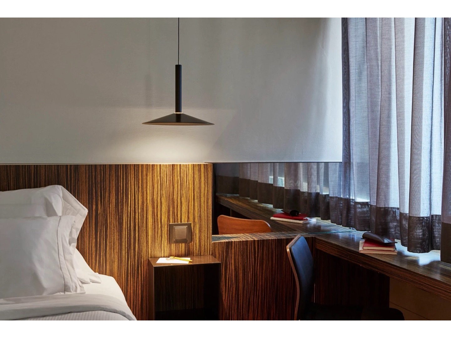 Prawie niezauważalna soczewka zasłania diodę LED i rozprowadza światło. Jeśli zastosujemy tylko lampę cylindryczną, światło skierowane w dół będzie nienaganne, a po dodaniu klosza światło ucieka, oświetlając samą lampę. Ten nowy system oświetlenia daje użytkownikowi kontrolę nad światłem, oferując nową propozycję koncepcyjną.