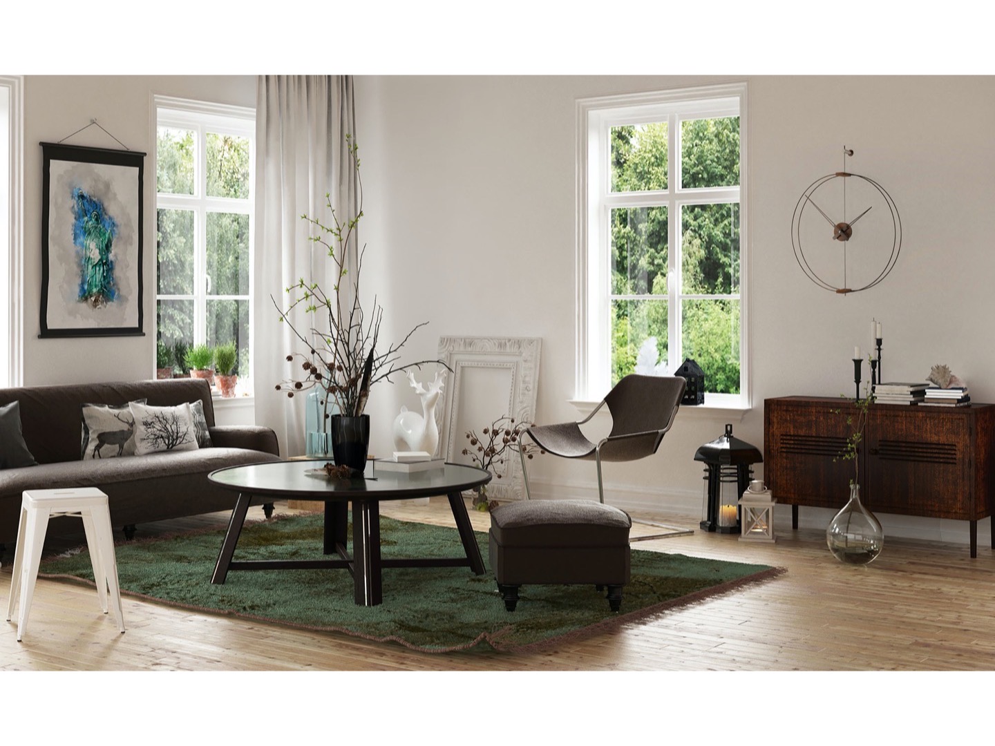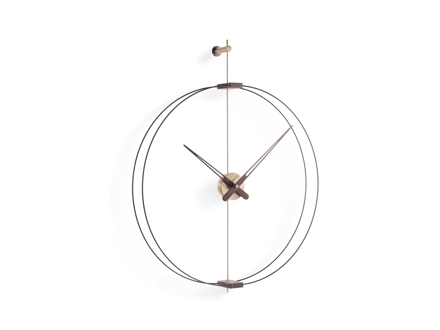 Obręcz wykonana z czarnego włókna szklanego. Wskazówki z malowanego na czarno drewna orzechowego. Osłona mechanizmu z drewna orzechowego w kolorze naturalnym. Mechanizm UTS Germany.