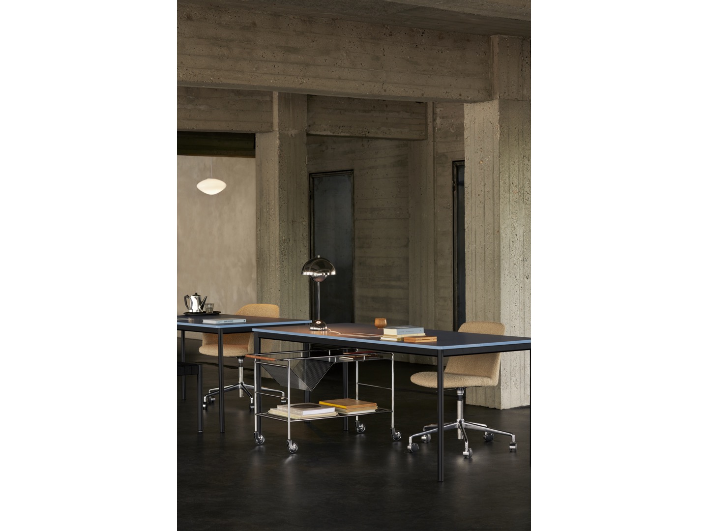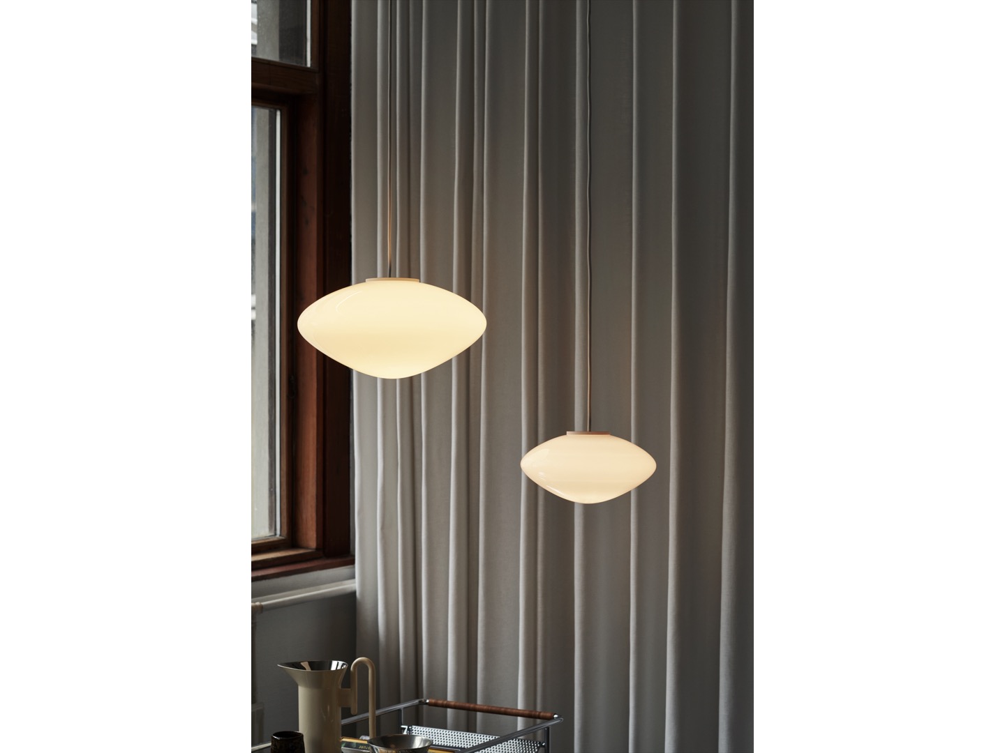 Kolekcja Mist obejmuje lampę wiszącą w dwóch rozmiarach oraz lampę stołową, inspirowana jest ciepłym, rozproszonym światłem porannych promieni przeświecających przez mgłę, oferując nowoczesne podejście do klasycznego światła kuli.