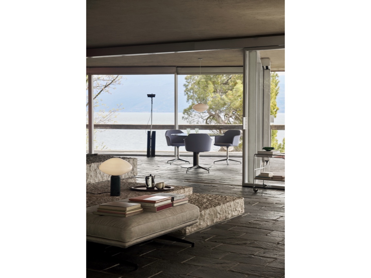 Kolekcja Mist obejmuje lampę wiszącą w dwóch rozmiarach oraz lampę stołową, inspirowana jest ciepłym, rozproszonym światłem porannych promieni przeświecających przez mgłę, oferując nowoczesne podejście do klasycznego światła kuli.