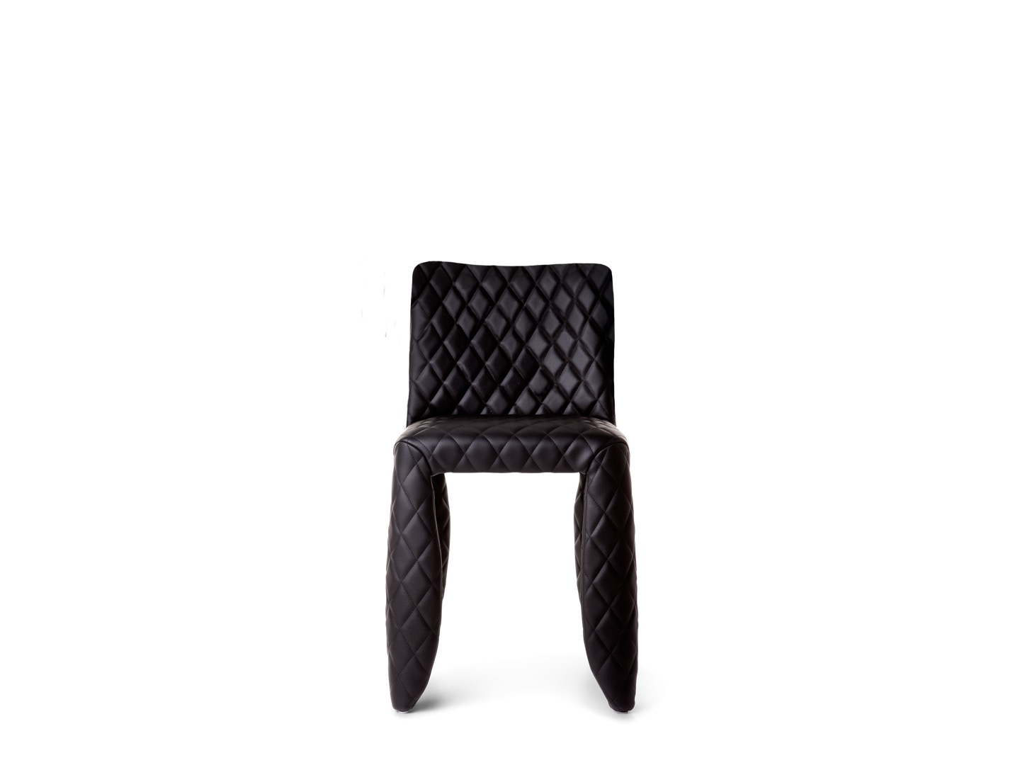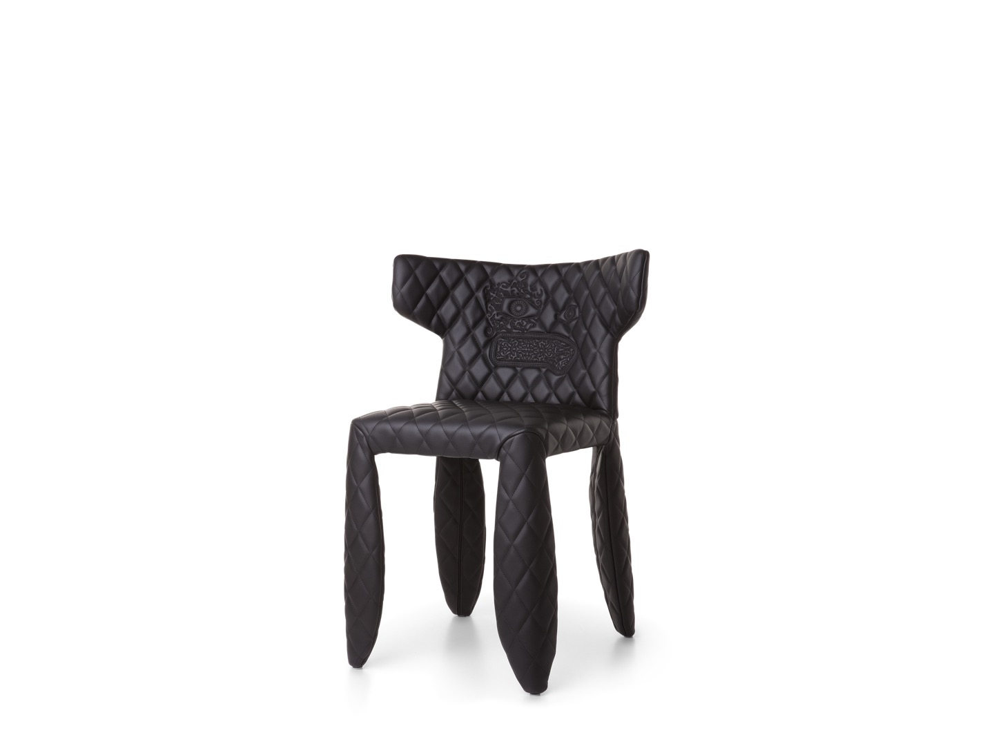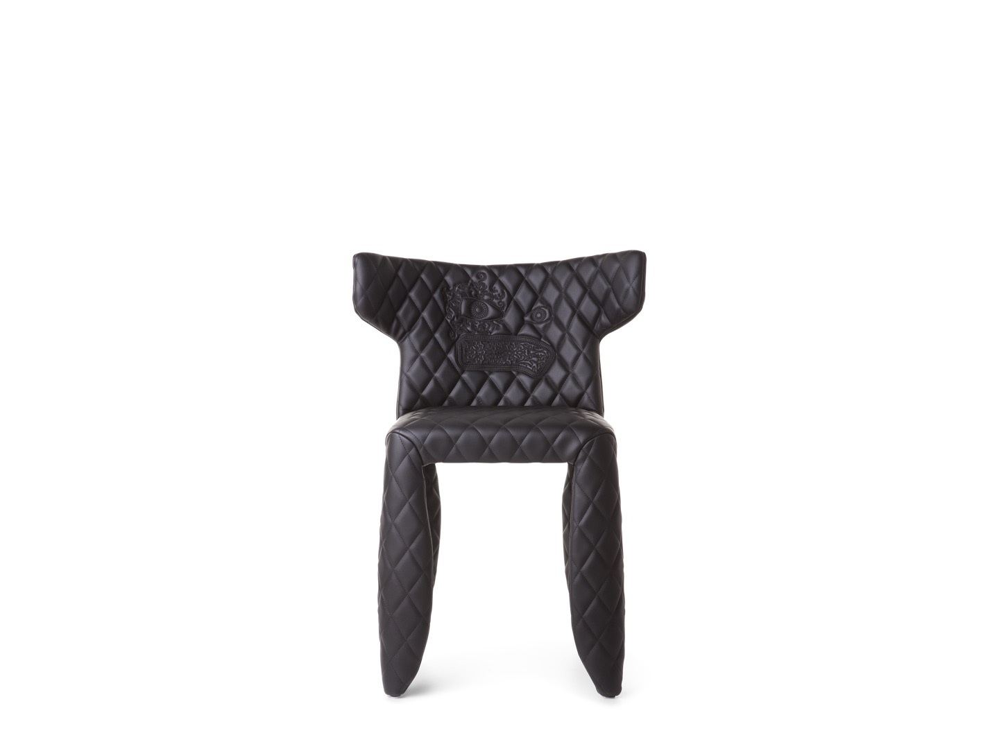 Miękkie, puszyste i stylowe krzesło jako symbol odwiecznej walki między przeciwstawnymi siłami, które toczą się w życiu i które można łatwo rozpoznać w nas, jeśli mamy odwagę otworzyć oczy. Straszny? Zupełnie nie! Kiedy usiądziesz i będziesz cieszyć się wygodą i miękkością krzesła, zapominasz o potworze. Wersja sygnowana, nieustraszony lider rodziny Monster, jest obita oryginalną czarną skórą syntetyczną Moooi z wyhaftowaną twarzą.