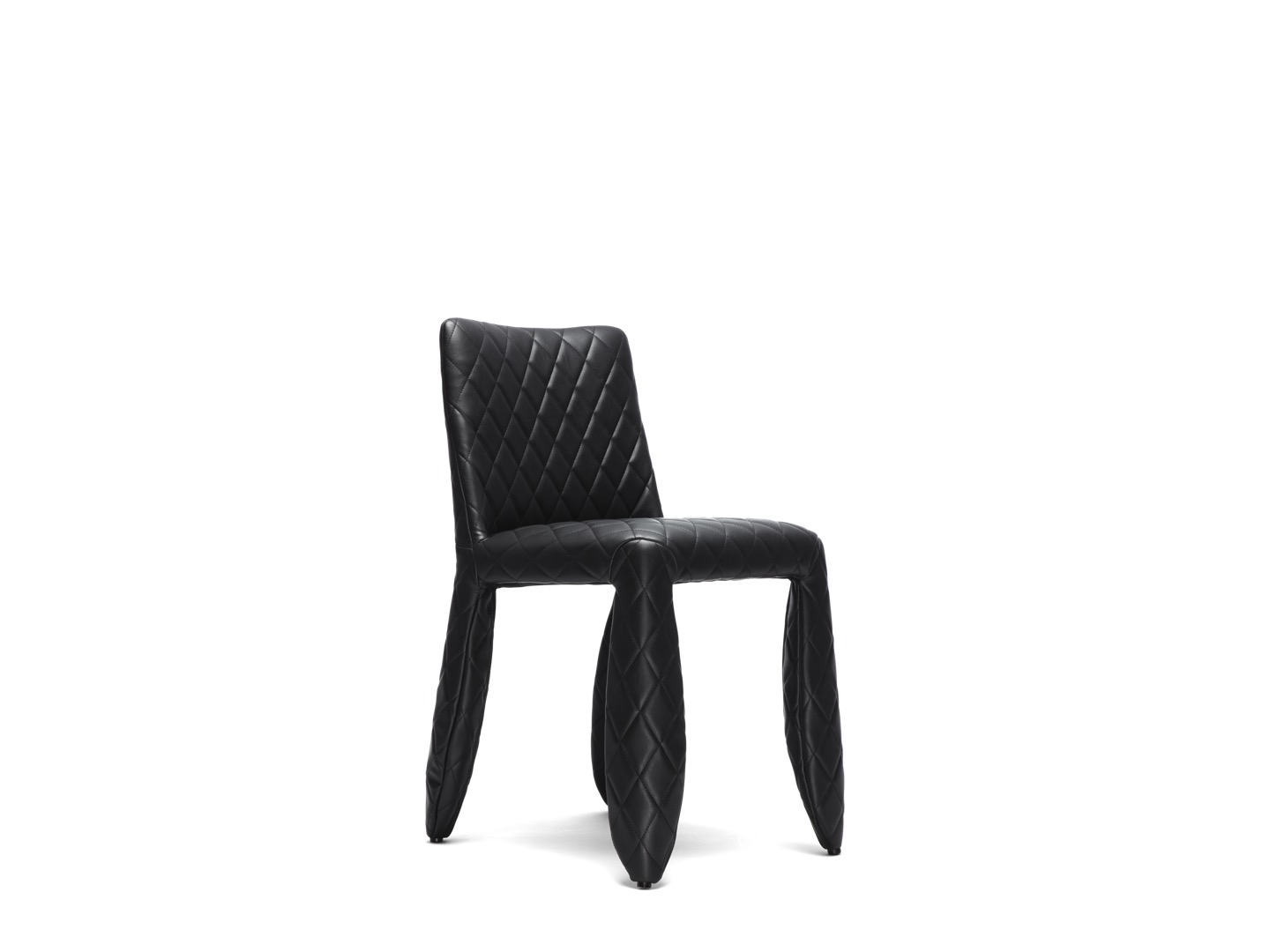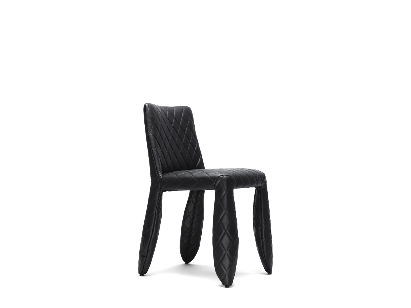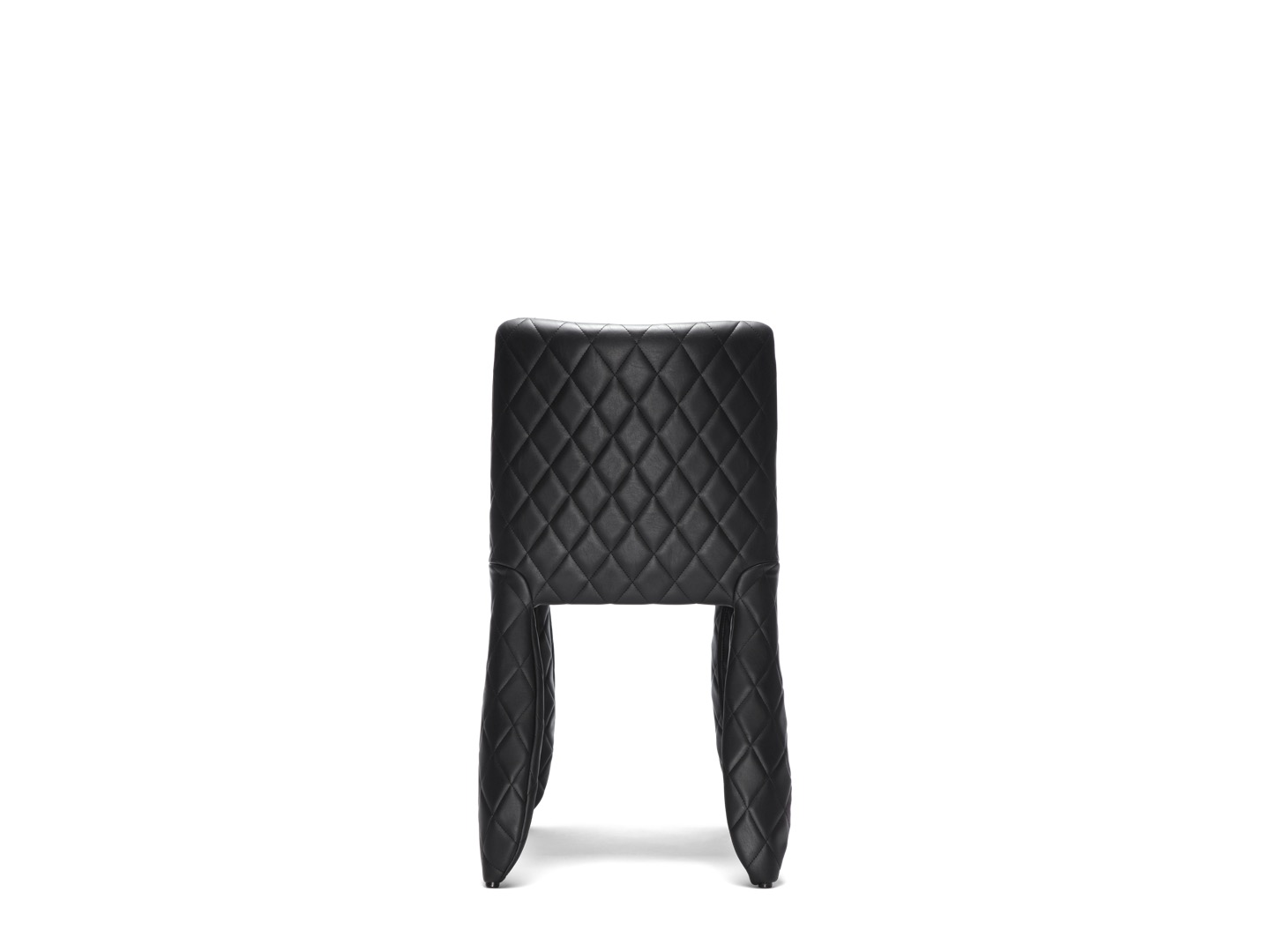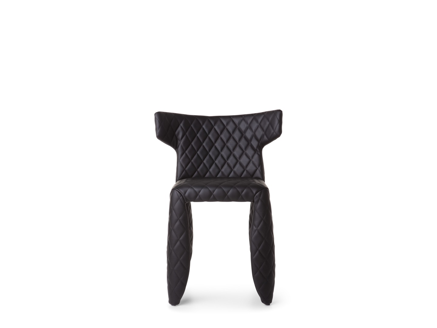 Miękkie, puszyste i stylowe krzesło jako symbol odwiecznej walki między przeciwstawnymi siłami, które toczą się w życiu i które można łatwo rozpoznać w nas, jeśli mamy odwagę otworzyć oczy. Straszny? Zupełnie nie! Kiedy usiądziesz i będziesz cieszyć się wygodą i miękkością krzesła, zapominasz o potworze. Wersja sygnowana, nieustraszony lider rodziny Monster, jest obita oryginalną czarną skórą syntetyczną Moooi z wyhaftowaną twarzą.