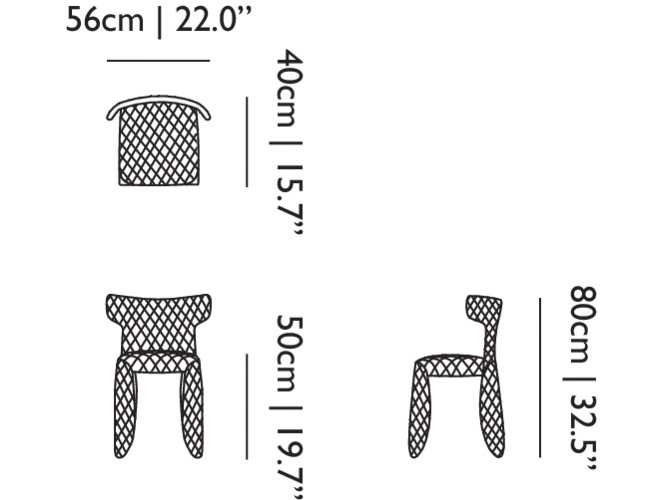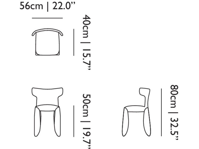 Naked Arms - szerokość 56 x głębokość 40 x wysokość 80 x wysokość siedziska 50 cm.