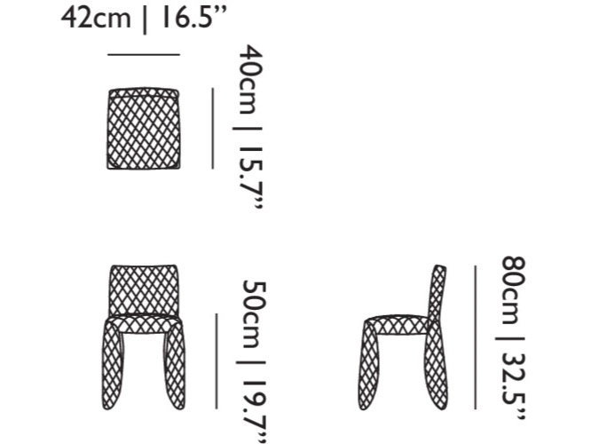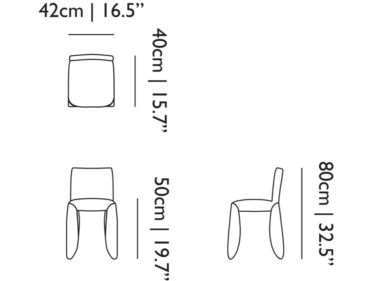 Naked no Arms - szerokość 42 x głębokość 40 x wysokość 80 x wysokość siedziska 50 cm.