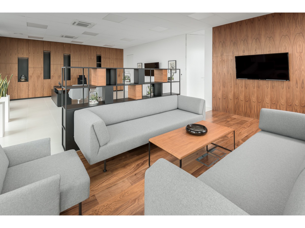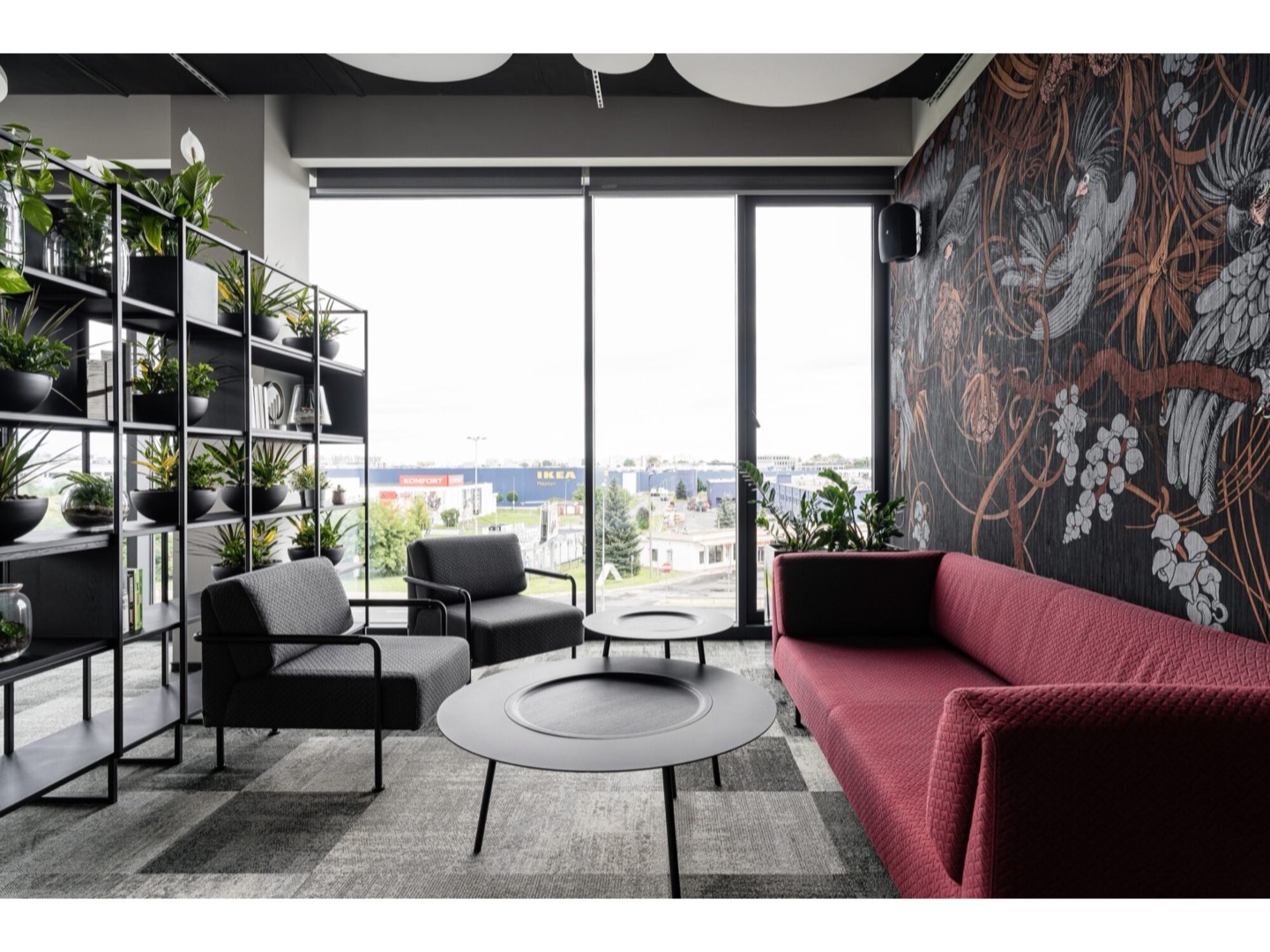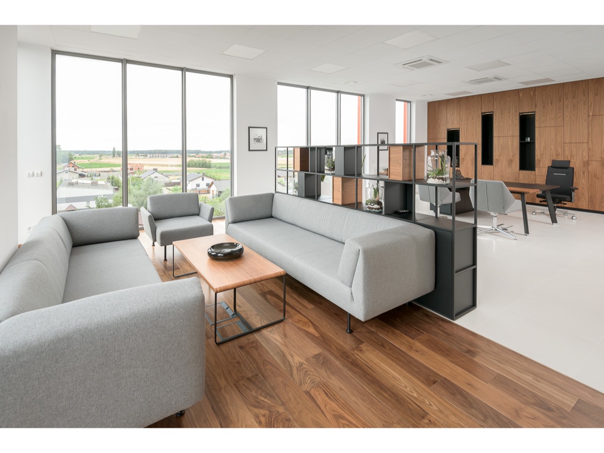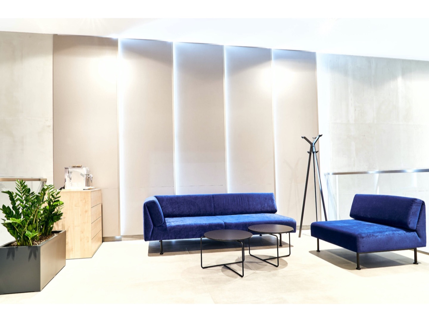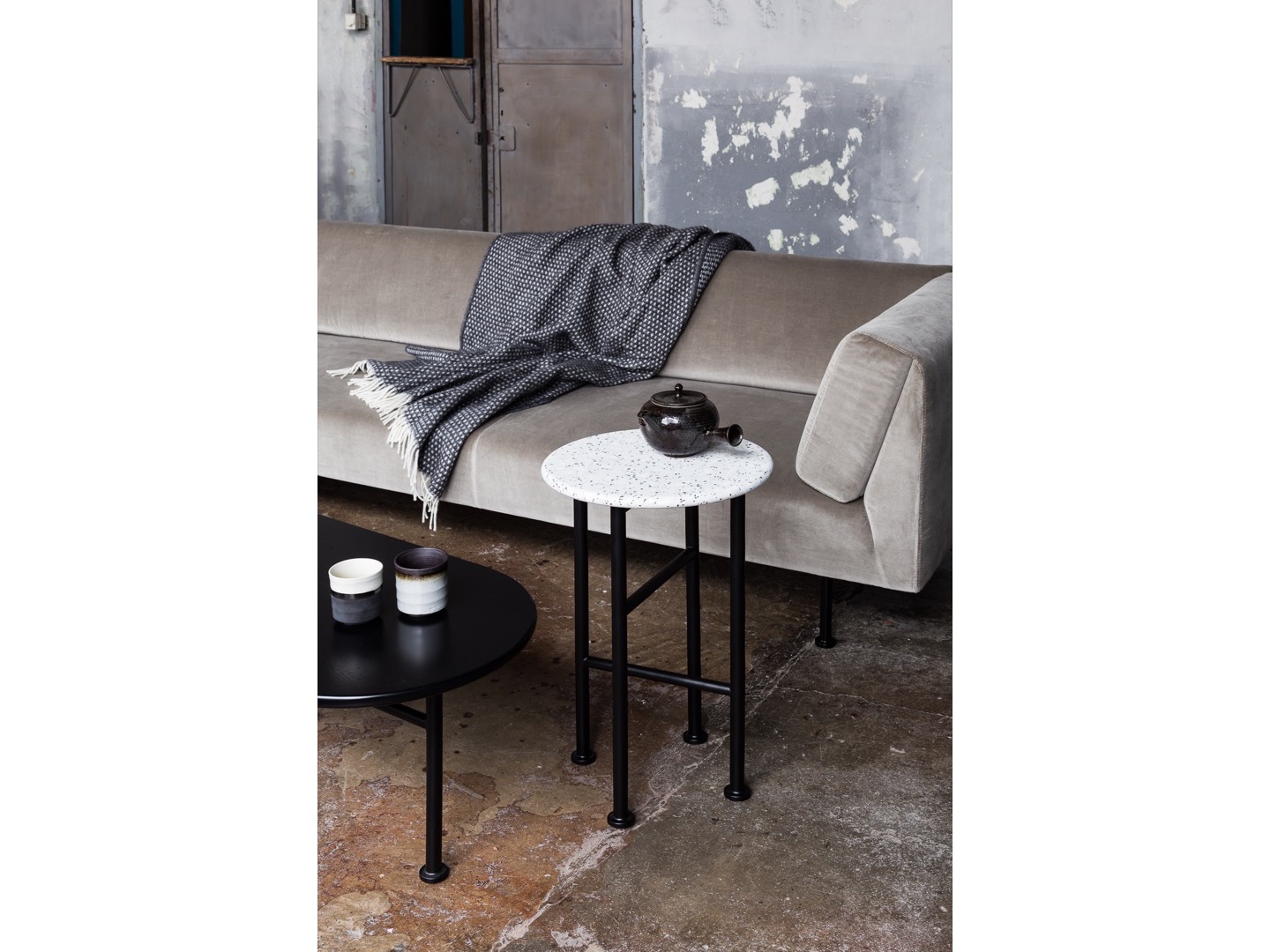 Siedziska, które mogą być zamawiane na podstawie drewnianej dębowej lub czarnych nogach lakierowanych, uzupełniają stoliki o różnych kształtach i wysokościach, w tym ława o owalnym blacie. Oprócz okleiny naturalnej dębowej, materiałem użytym do produkcji blatów stolików okrągłych jest nowość w NOTI - białe i czarne lastryko.