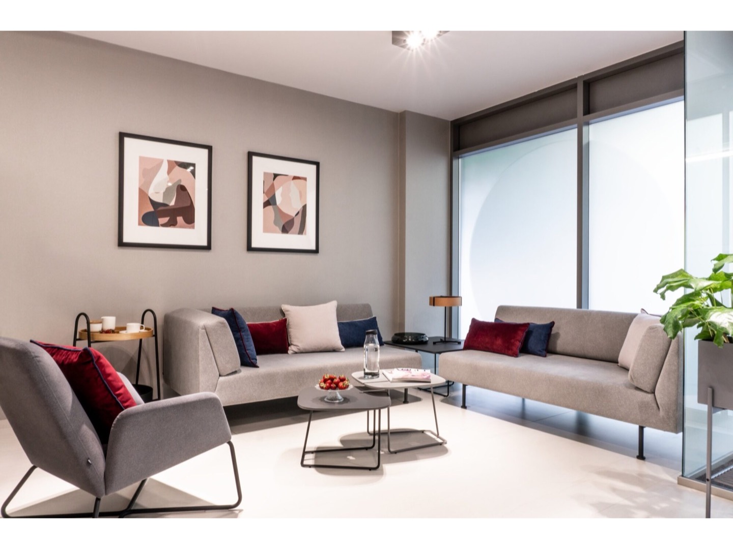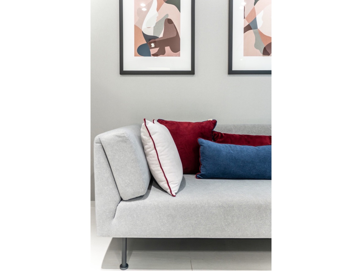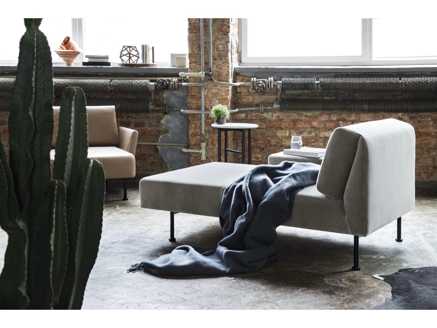 Charakterystyczną cechą kolekcji Muse jest prostopadłościenna poduszka podłokietnika skierowana, pod kątem, do wewnątrz siedziska. Geometryczne oparcia składają się z twardszego korpusu i miękkiego wnętrza, a połączone są w jedną formę wspólnym materiałem tapicerskim.