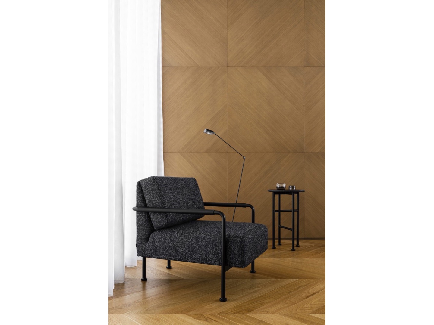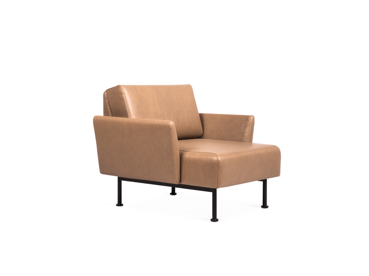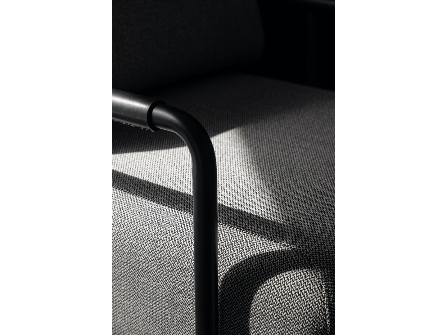 Charakterystyczną cechą kolekcji jest prostopadłościenna poduszka podłokietnika skierowana, pod kątem, do wewnątrz siedziska. Geometryczne oparcia składają się z twardszego korpusu i miękkiego podparcia, a połączone są w jedną formę wspólnym materiałem tapicerskim.